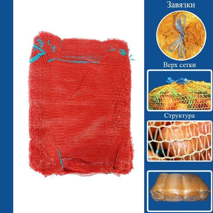 !09 Сетка овощная с ручками, 10 штук, красная, 30 х 47 см, 8 кг.