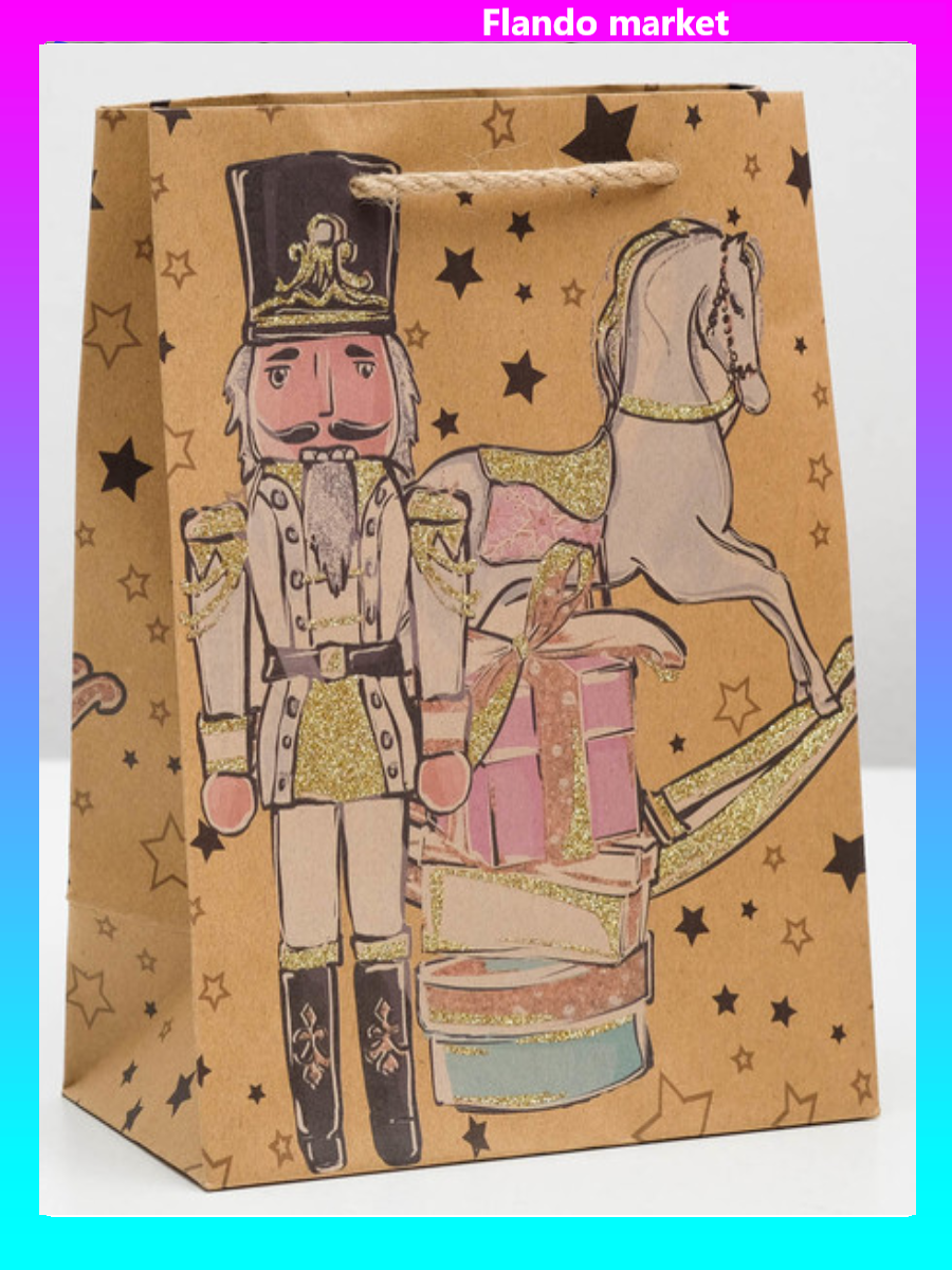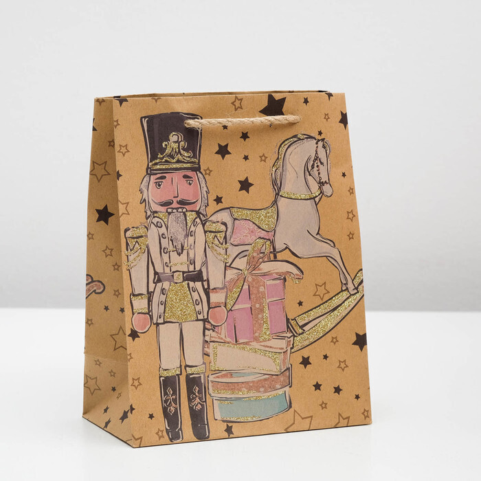 !09 Пакет (набор 6 штук) крафт "Щелкунчик" 17,8 х 22,9 х 9,8 см