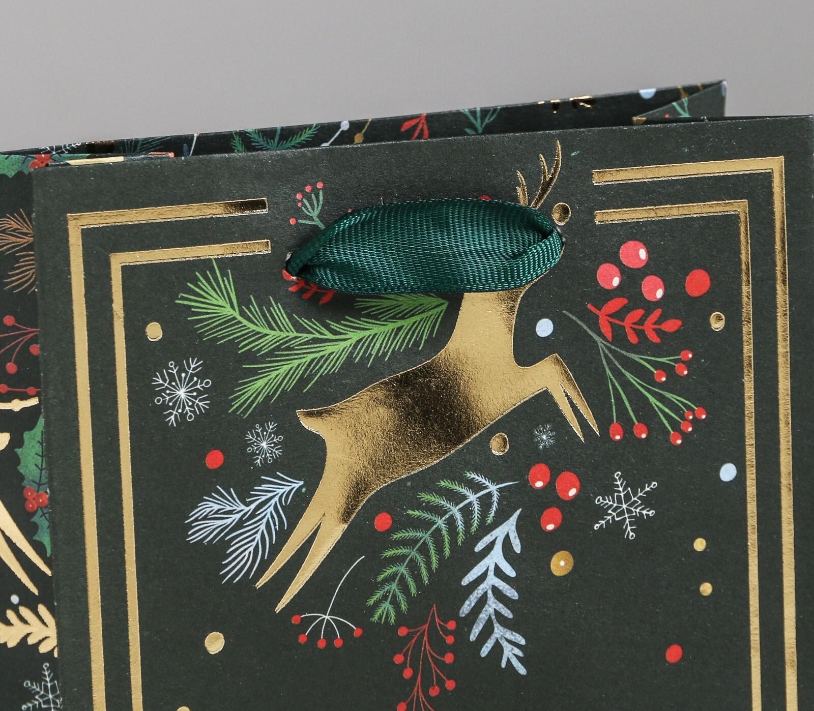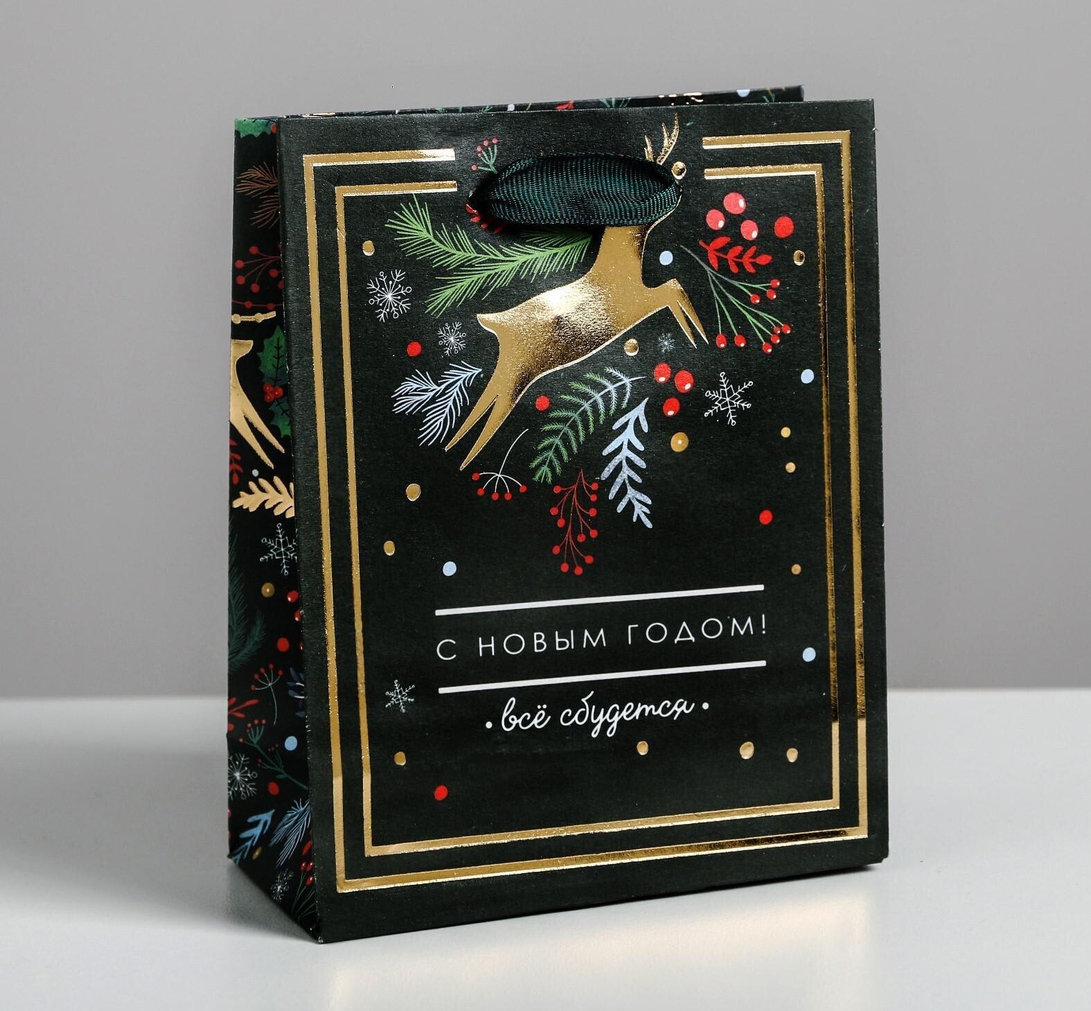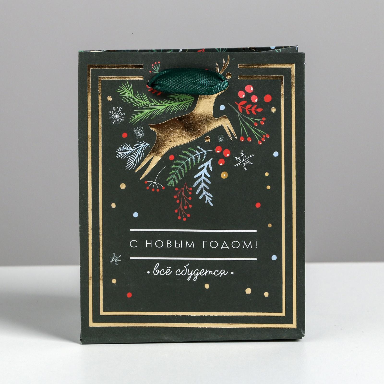 !09 Пакет (набор 4 штуки) подарочный новогодний крафтовый вертикальный «Всё сбудется», S 12 х 15 х 5.5 см