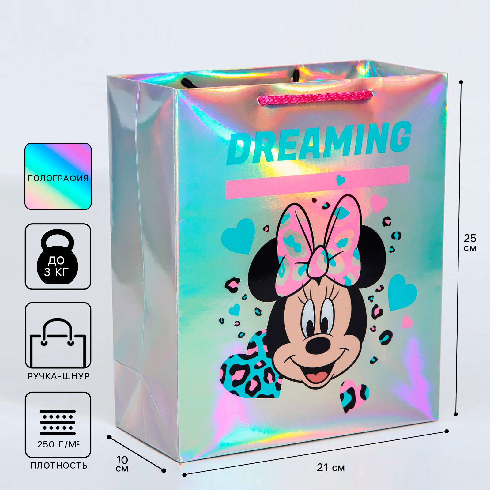 !09 Пакет (набор 2 штуки) голография горизонтальный "Dreaming", Минни Маус, 25 х 21 х 10 см