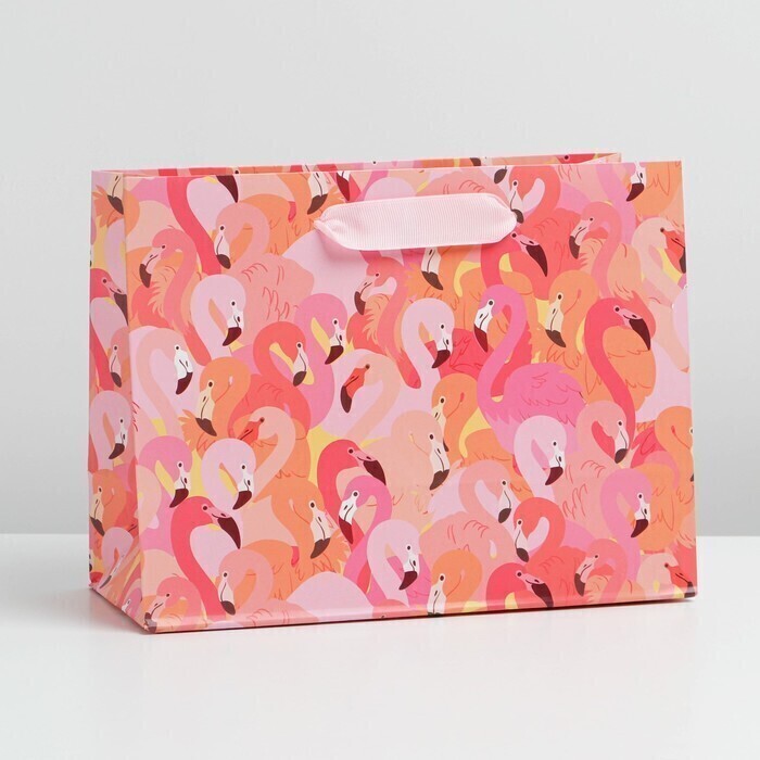 !09 Пакет (набор 3 штуки) ламинированный горизонтальный «Фламинго», MS 18 × 23 × 10 см.
