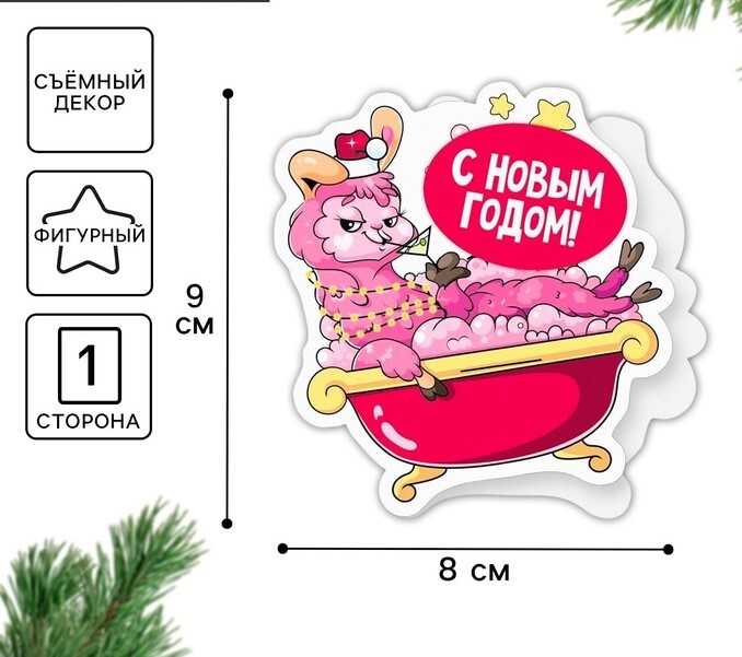 !09 Открытка (набор 7 штук) поздравительная «Ламантичного Нового Года!» лама в ванне, 8×9 см.