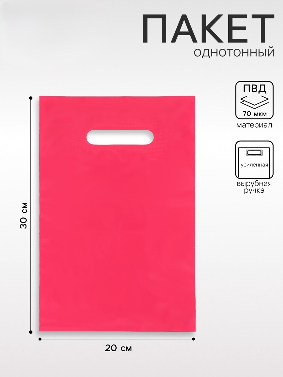 !09 Пакет полиэтиленовый (набор 25 штук) с вырубной ручкой, Розовый 20-30 См, 70 мкм.