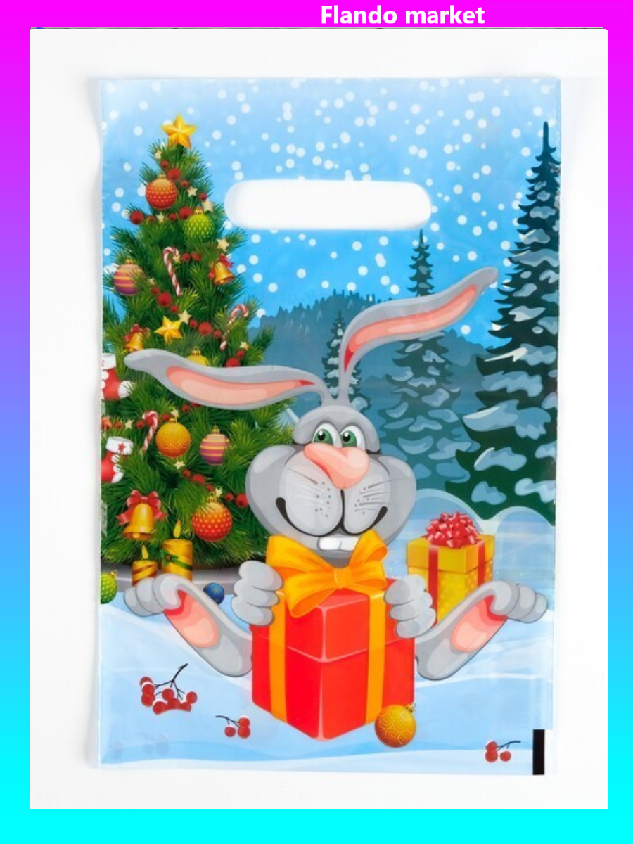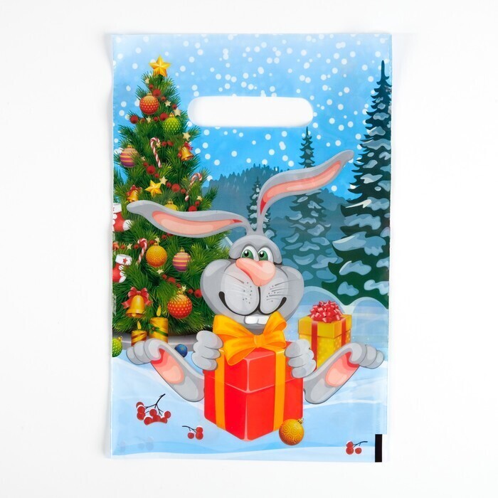 !09 Пакет "Зайка на льду" (набор 25 штук) полиэтиленовый с вырубной ручкой, 30 мкм 20 х 30 см.