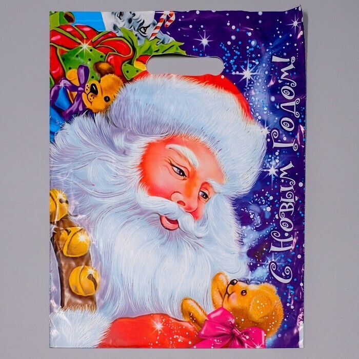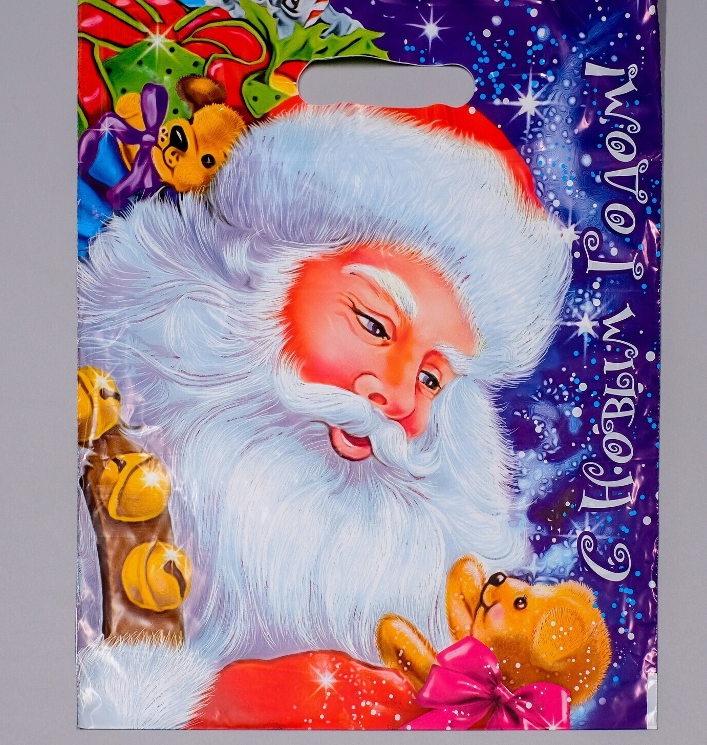 !09 Пакет подарочный (набор 20 штук) новогодний «Долгожданный подарок», полиэтиленовый с вырубной ручкой, 40×30 см. 30 мкм.