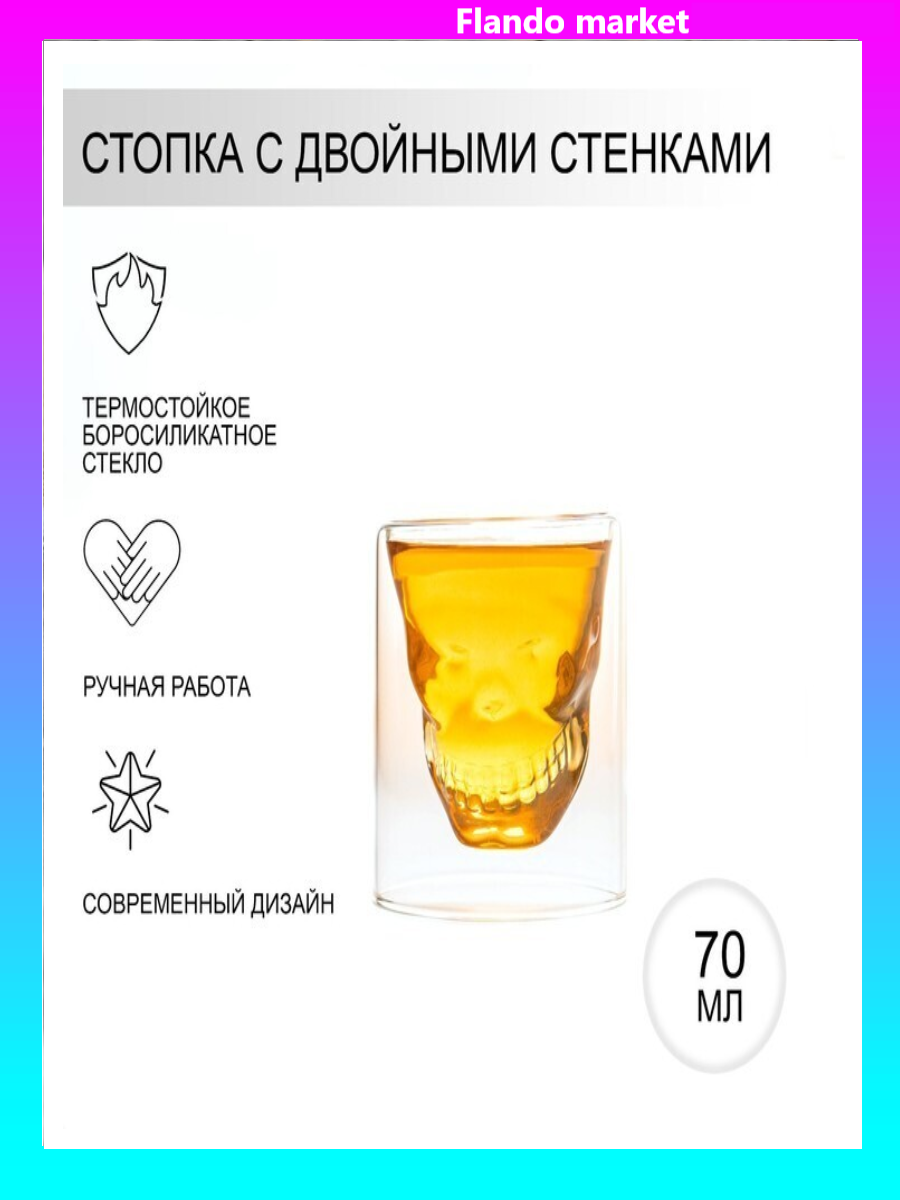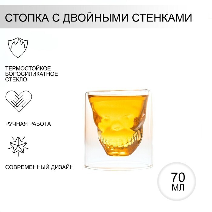 !09 Стопка - шот 2 штуки с двойными стенками Magistro «Череп. Хэллоуин», 70 мл, 7×7 см, стекло