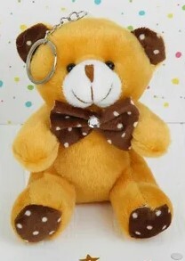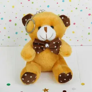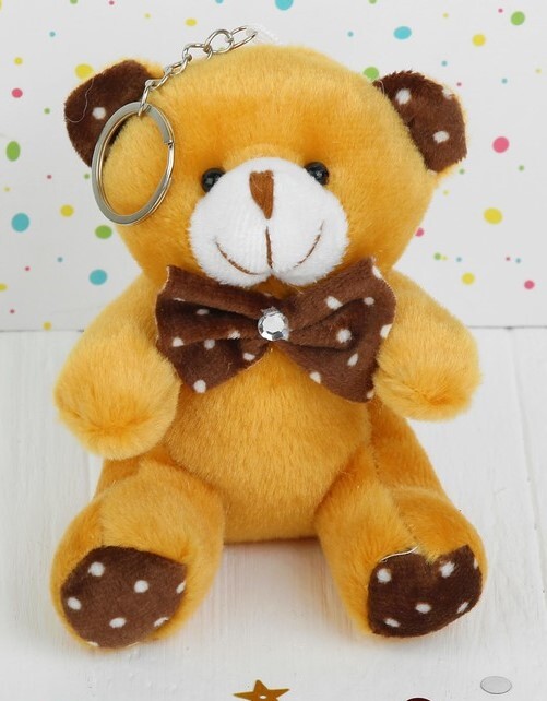 !09 Плюшевый игрушка-брелок «Мишка», бант в горошек, 10 см. цвет коричнево-оранжевый