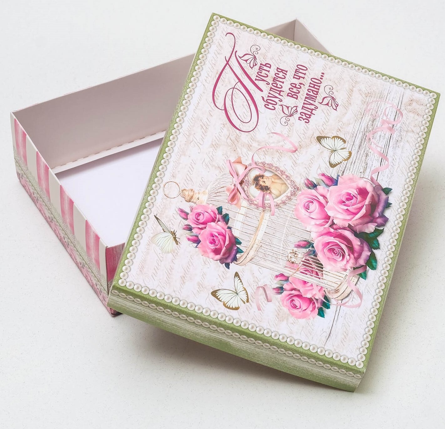 !09 Подарочная коробка (набор 2 штуки) сборная "Пусть сбываются мечты", 21 х 15 х 5,5 см.