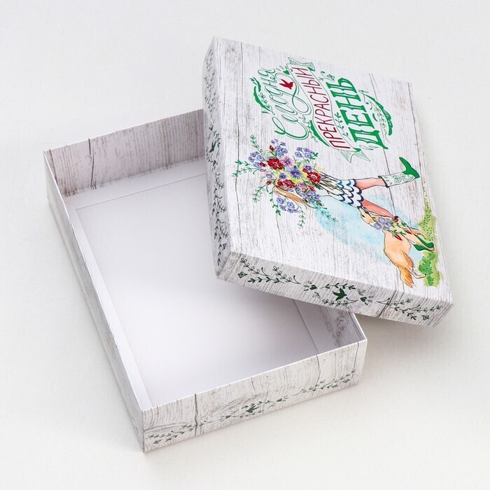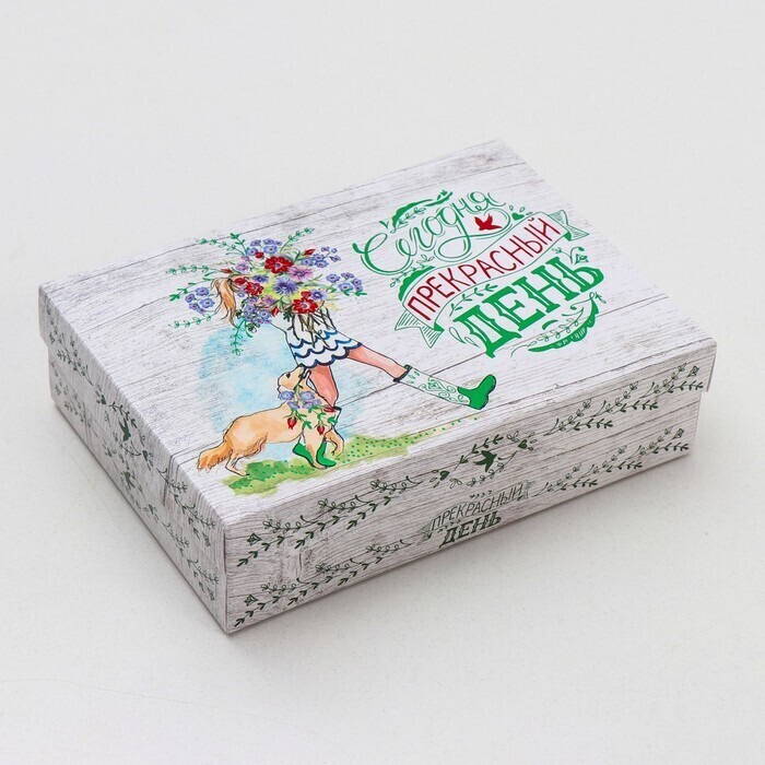 !09 Подарочная коробка (набор 4 штуки) сборная "Сегодня прекрасный день" 21 х 15 х 5,7 см.