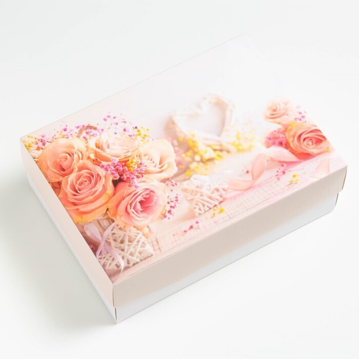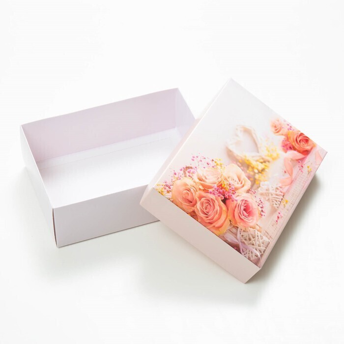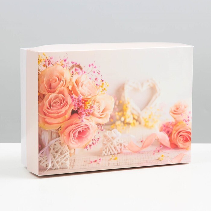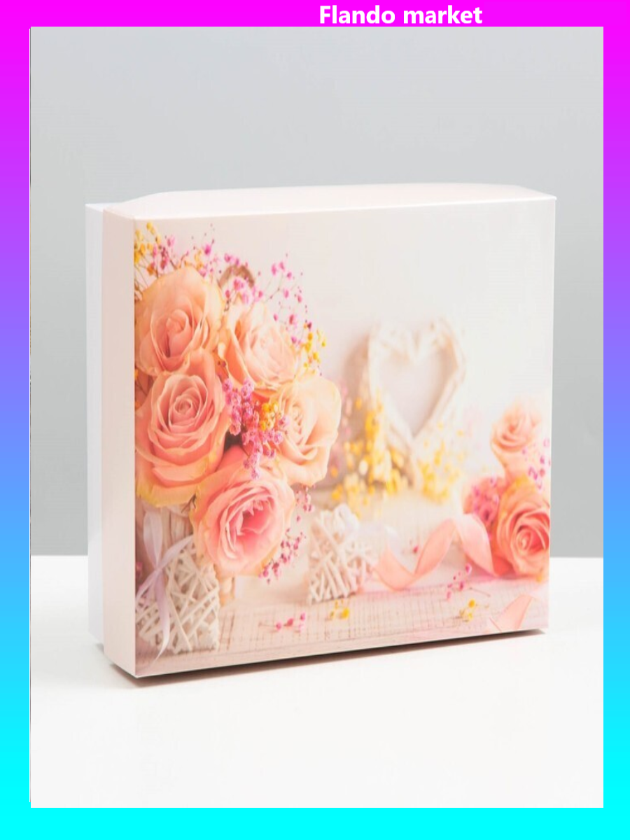 !09 Подарочная коробка (набор 4 штуки) сборная "Букет роз" 21 х 15 х 5,7 см.