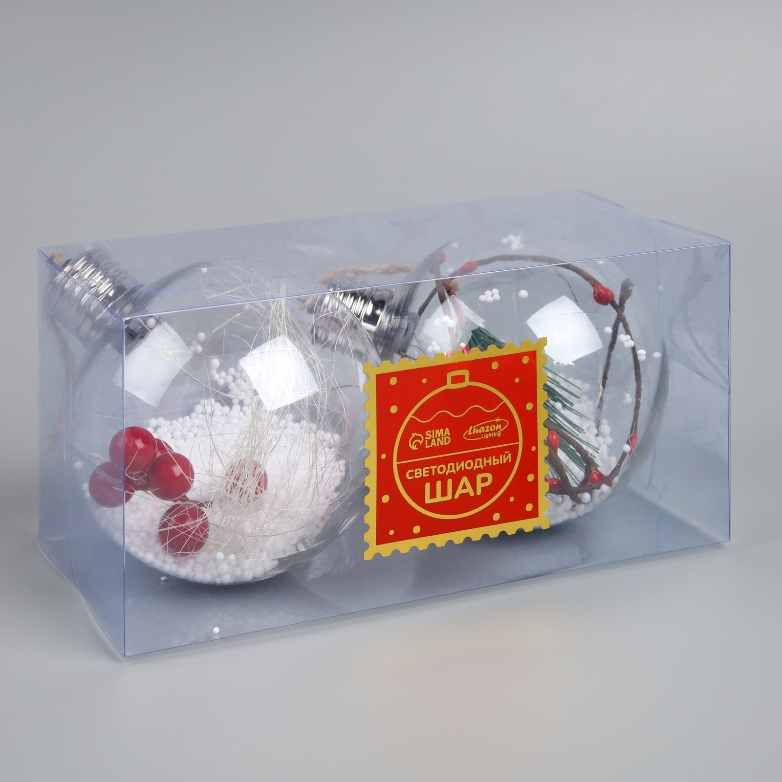 !09 Набор ёлочных шаров «Веточки и шишки» 2 шт., батарейки, 5 LED, свечение белое