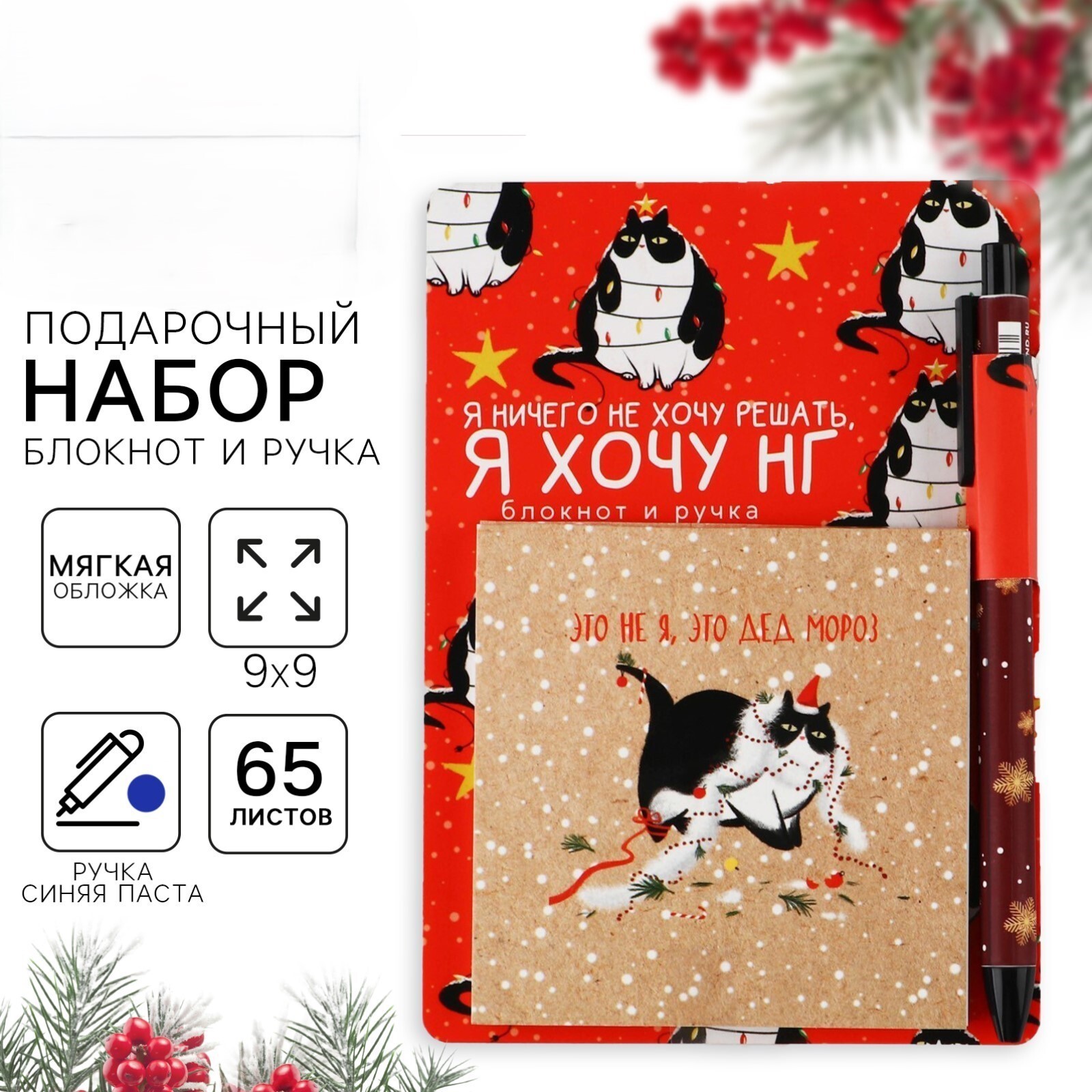 !09 Комплект из 2-х наборов - Подарочный набор новогодний, блокнот 9×9 см, ручка пластик «Это не я, это дед мороз»