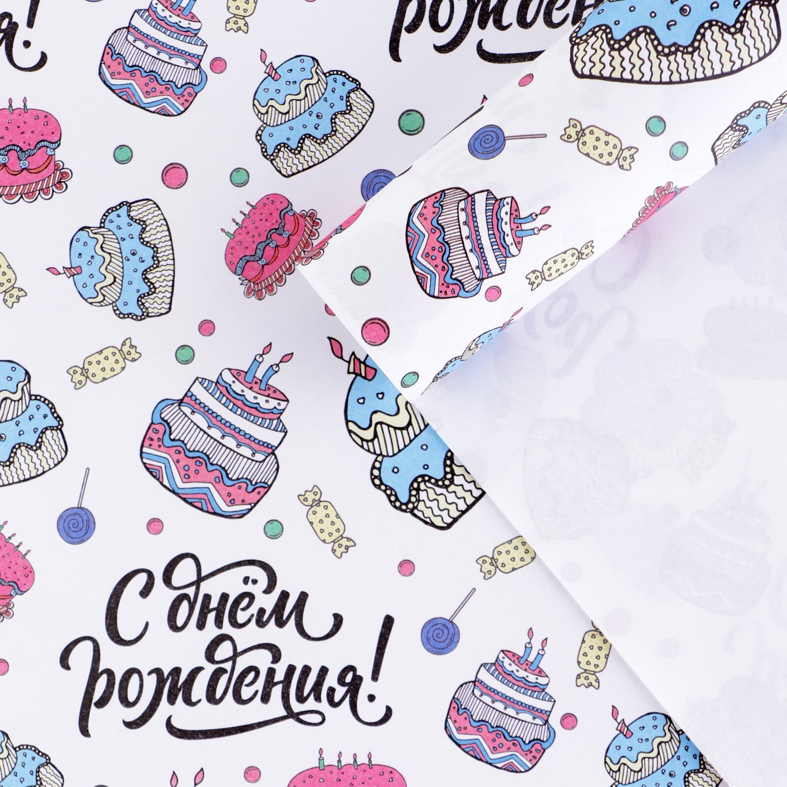 !09 Бумага упаковочная (набор 2 штуки) крафтовая «С Днём Рождения», 70 х 100 см.
