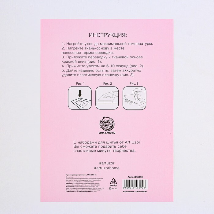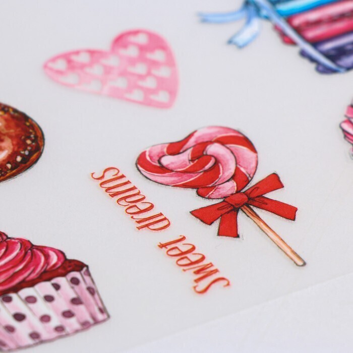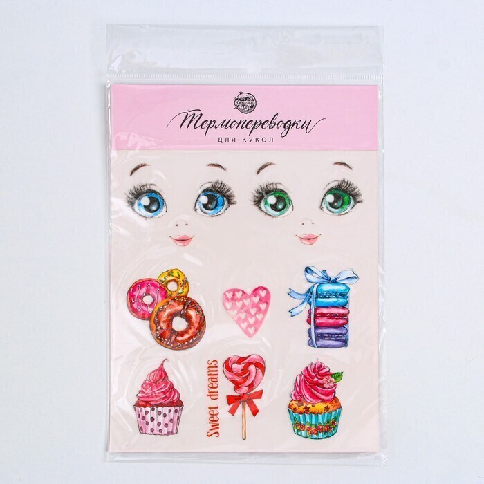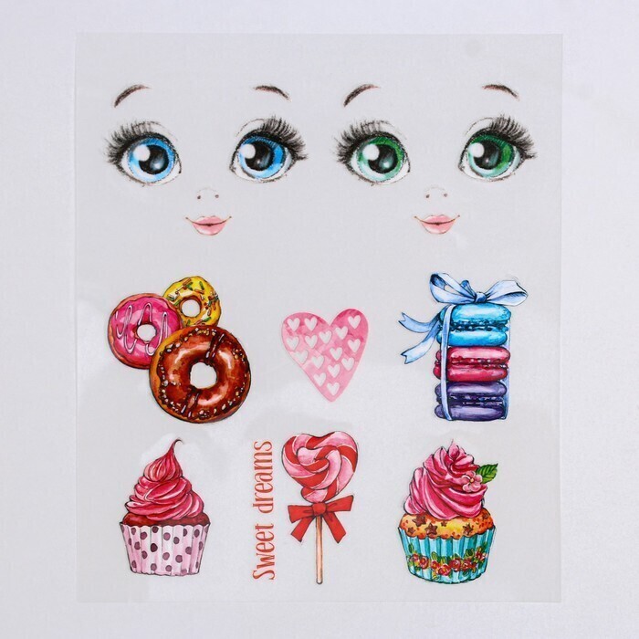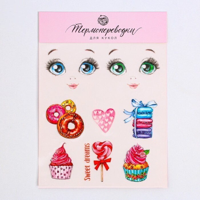 !09 Набор для творчества из 2-х видов:Термопереводки для кукол «Сладкое настроение», 14.5 × 23.5 см+Термоаппликация из страз «Узор», 15 × 5,7 см, 8 шт на листе, цвет белый