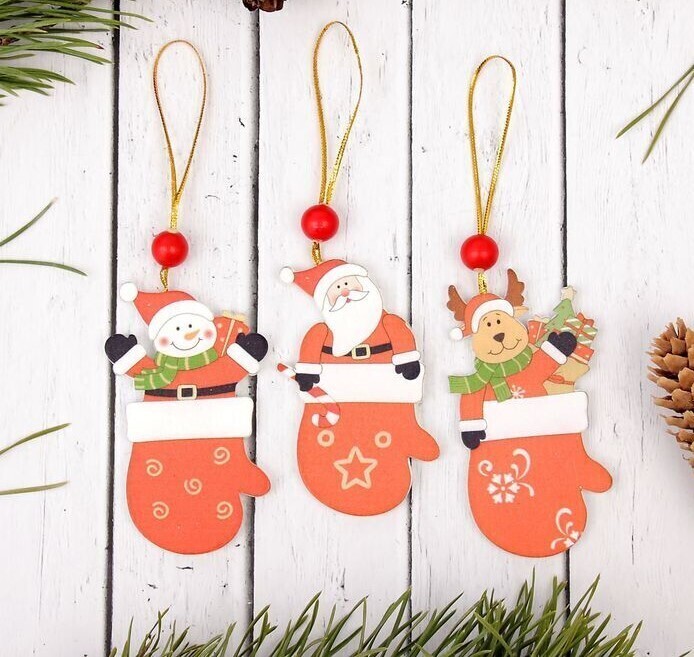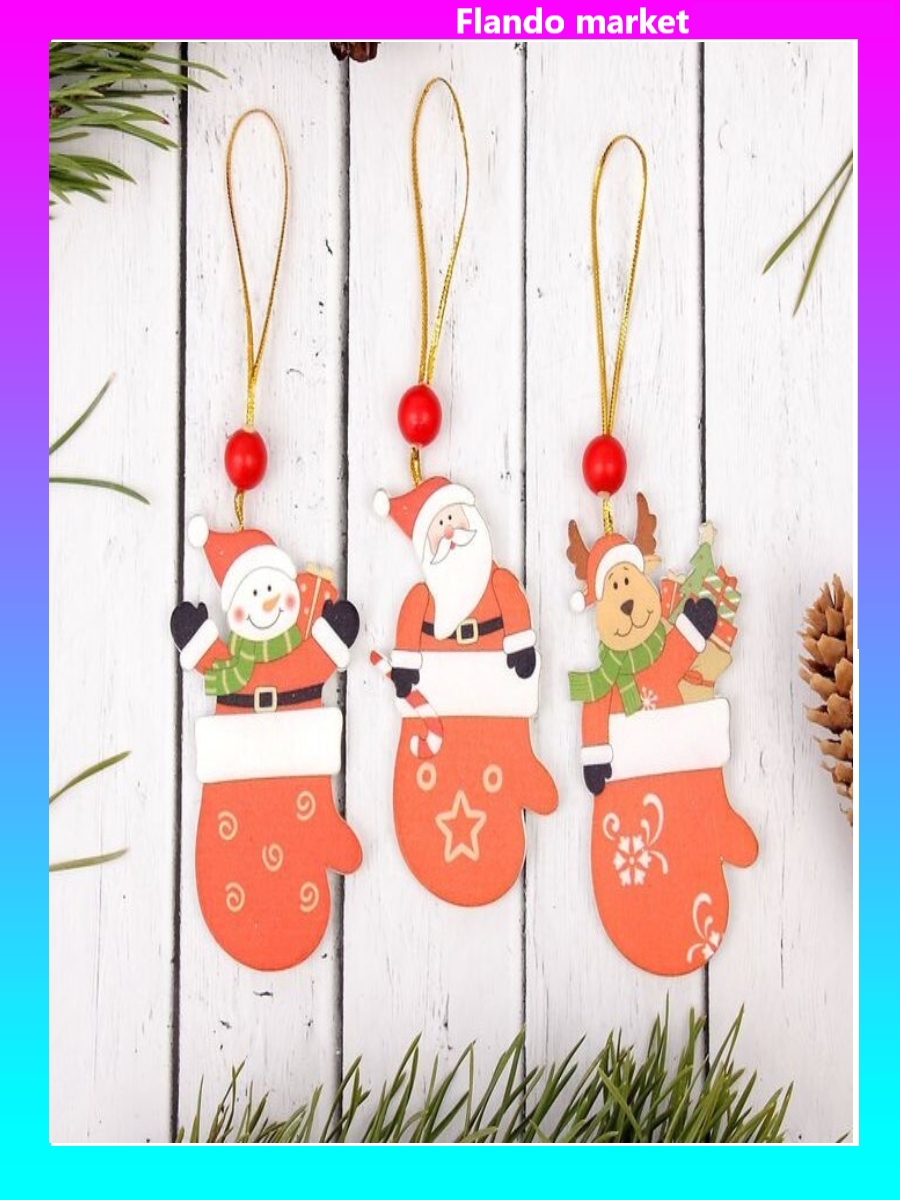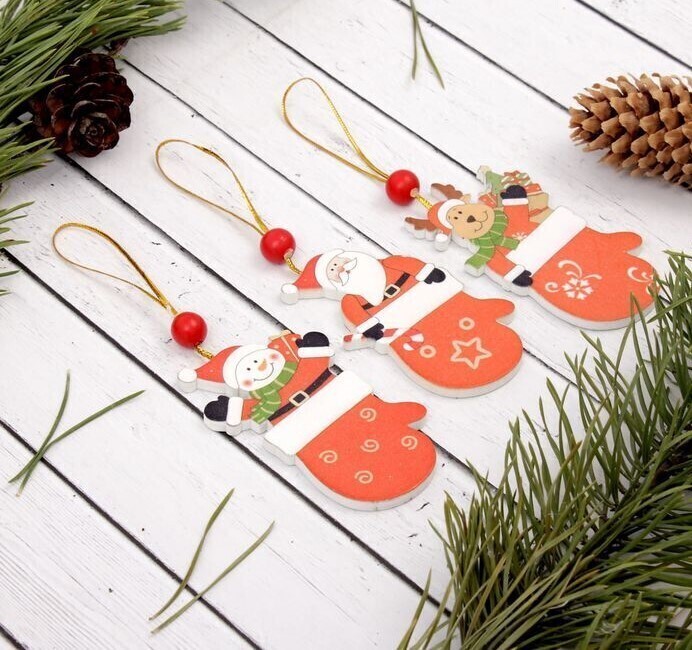 !09 Подвеска новогодняя (5 штук) «Варежка с сюрпризом»:дизайн "Дед Мороз" 2 штуки + дизайн "Снеговик"1 штука + дизайн "Собака" 2 штуки
