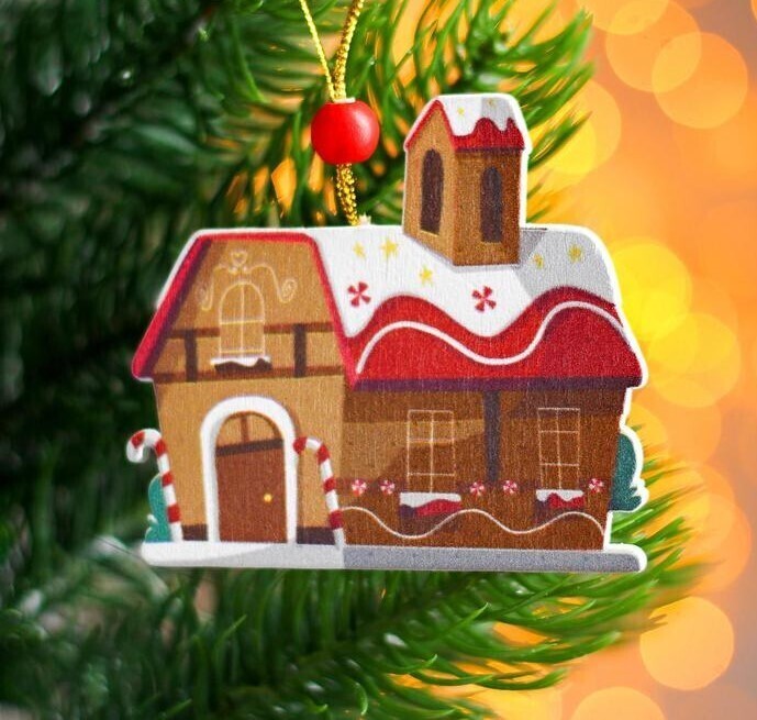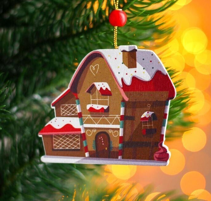!09 Подвеска новогодняя (комплект 3 штуки) деревянная «Дом пряник» 0,5×7×7 см.