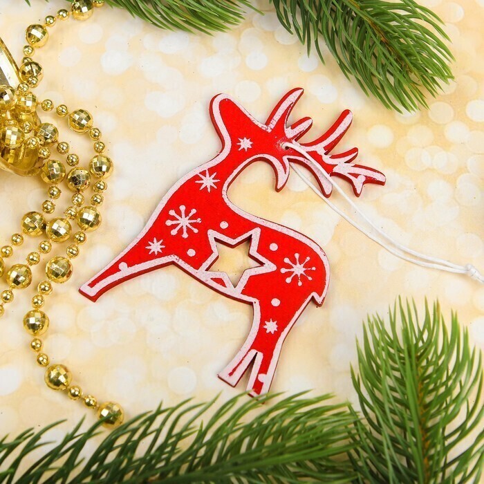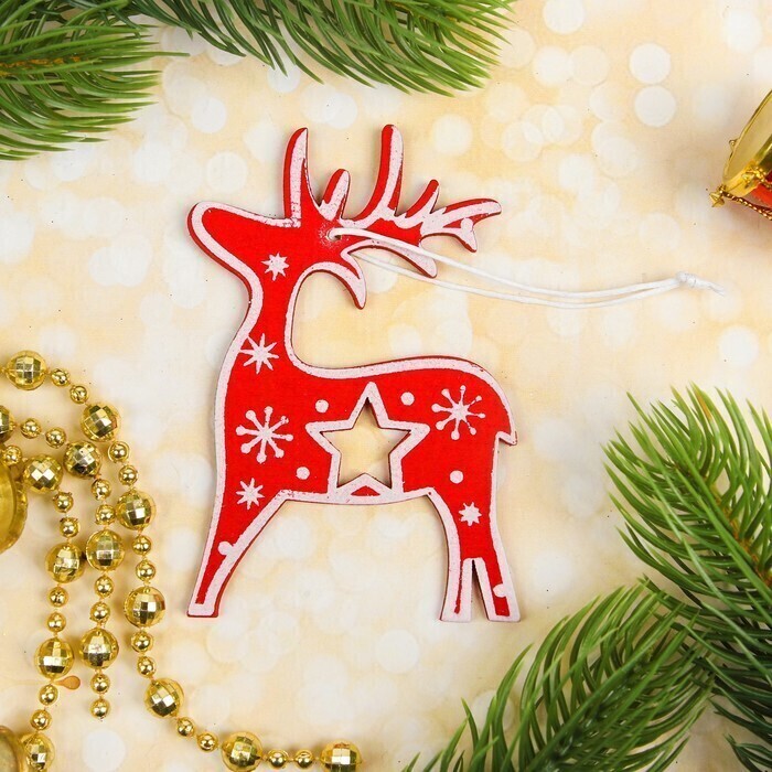 !09 Подвеска новогодняя (набор 2 штуки) «Звёздный олень» 10 см.