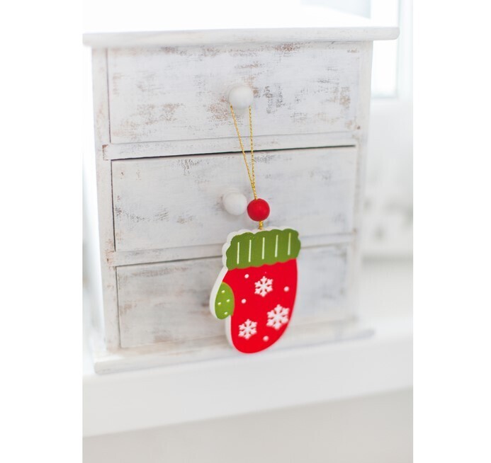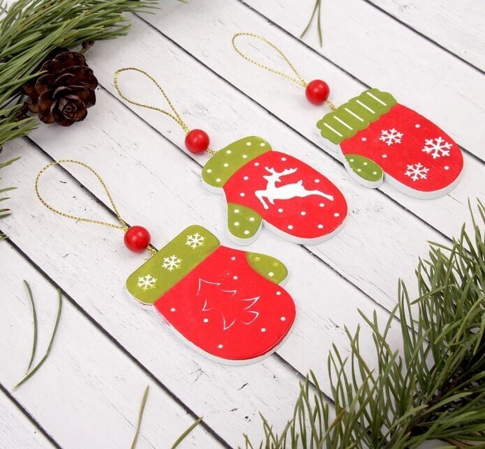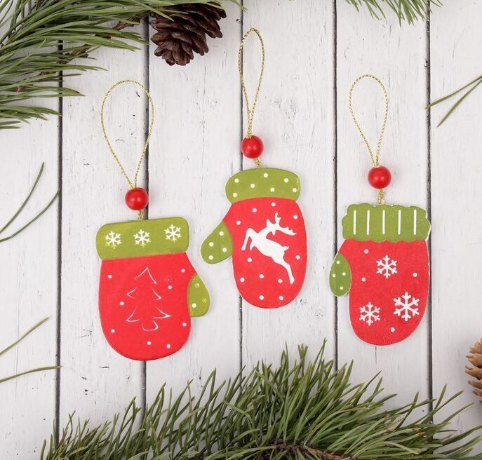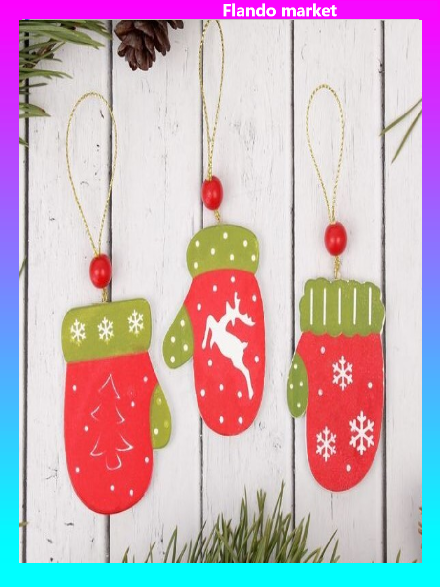 !09 Подвеска новогодняя (набор 6 штук) «Варежка»:дизайн "Елочка" 3 штуки + дизайн "Олень" 3 штуки