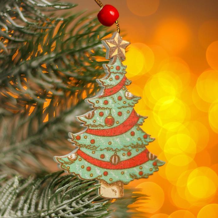 !09 Подвеска новогодняя (набор 4 штуки) «Елка» 13 х 7 х 0,5 см.