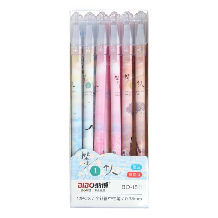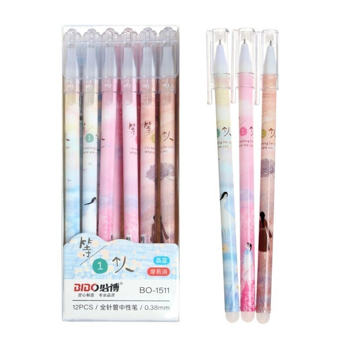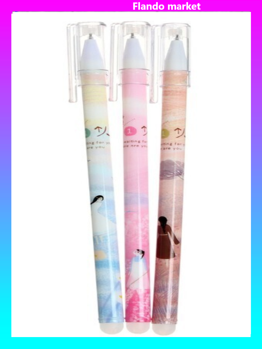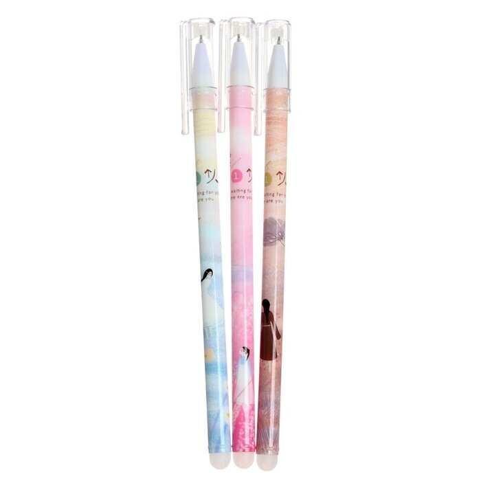 !09 Ручка гелевая (набор 4 штуки) со стираемыми чернилами, стержень синий, корпус МИКС