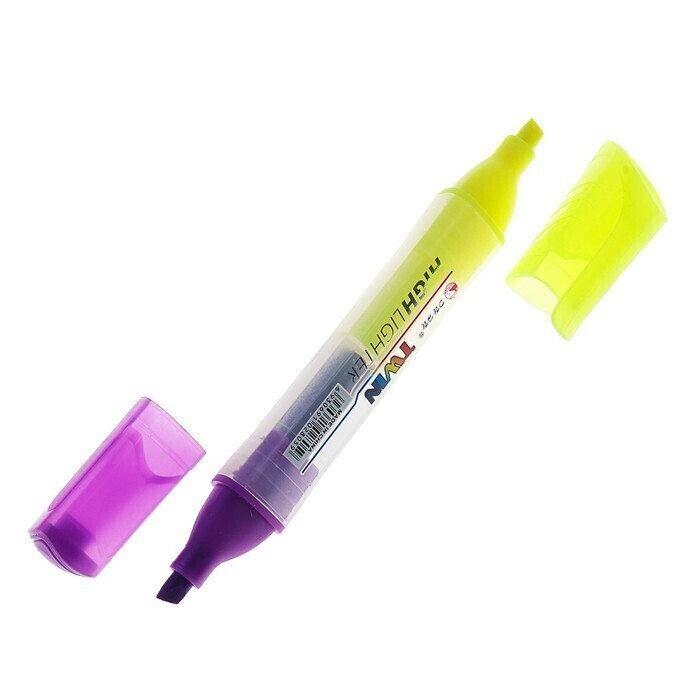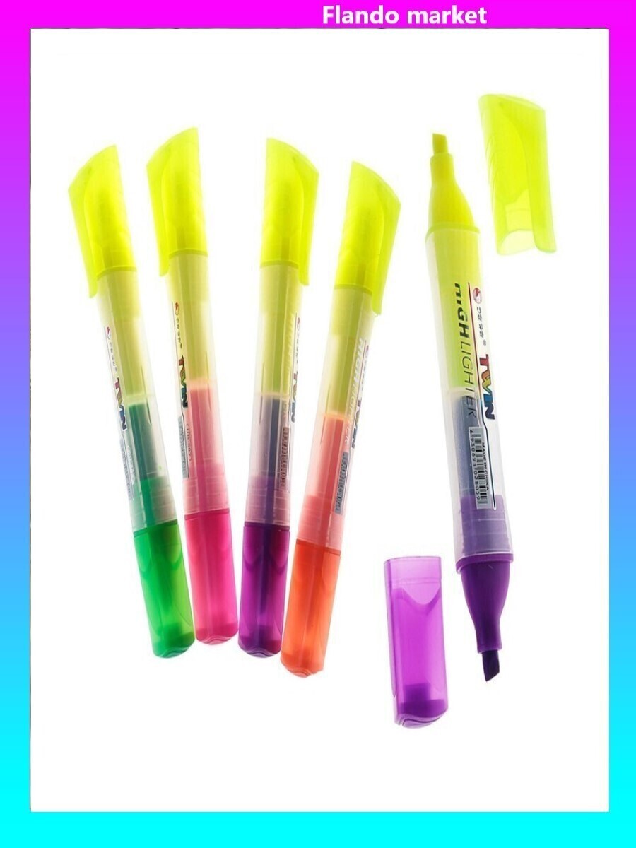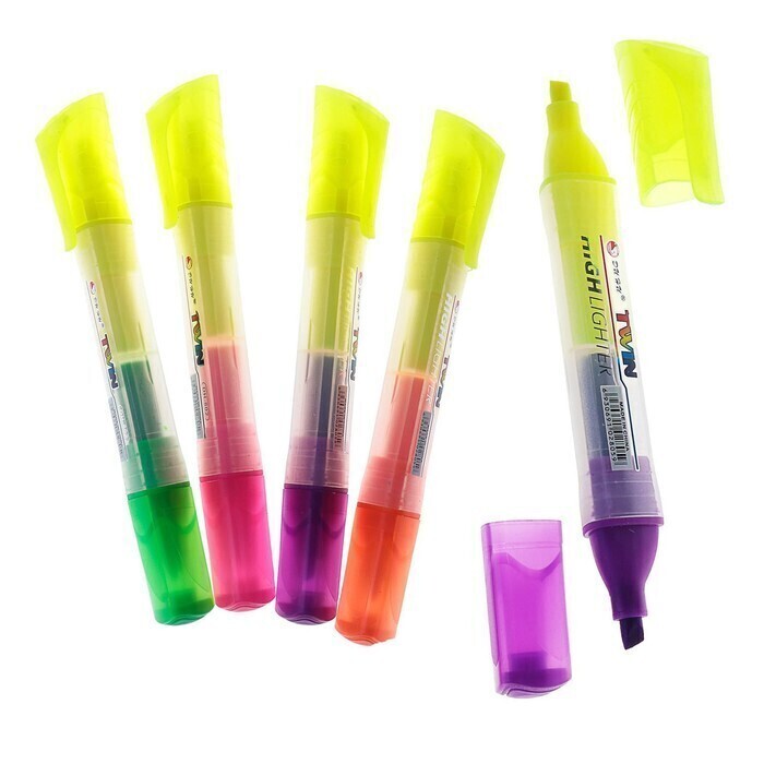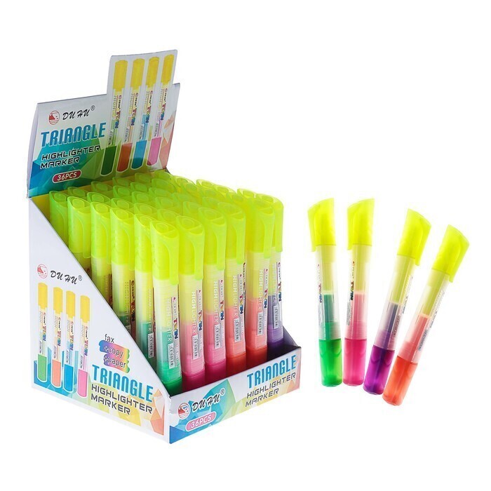 !09 Маркер-текстовыделитель (набор 6 штук) наконечник скошенный, 5 мм, корпус треугольный, двухцветный, МИКС