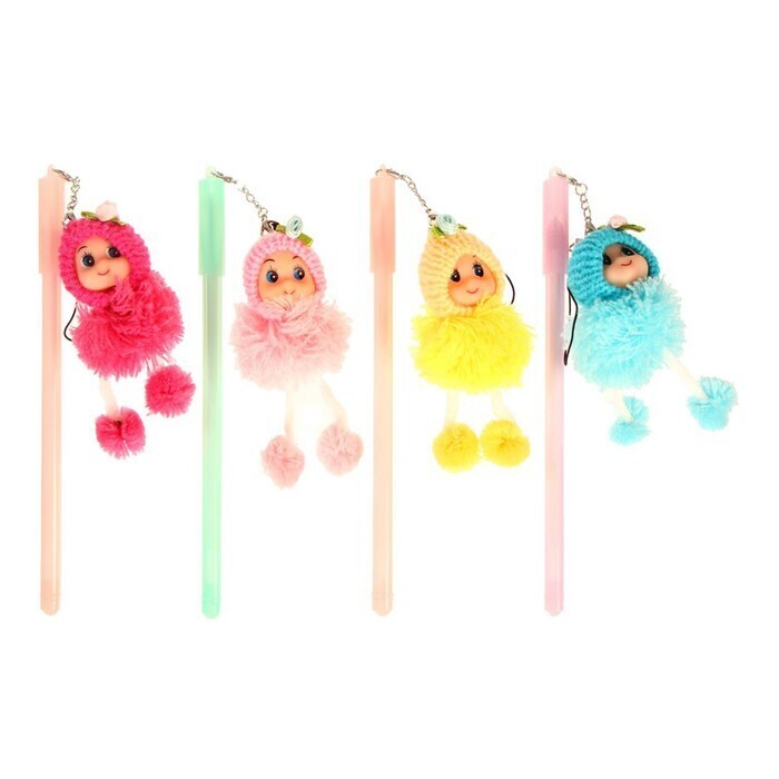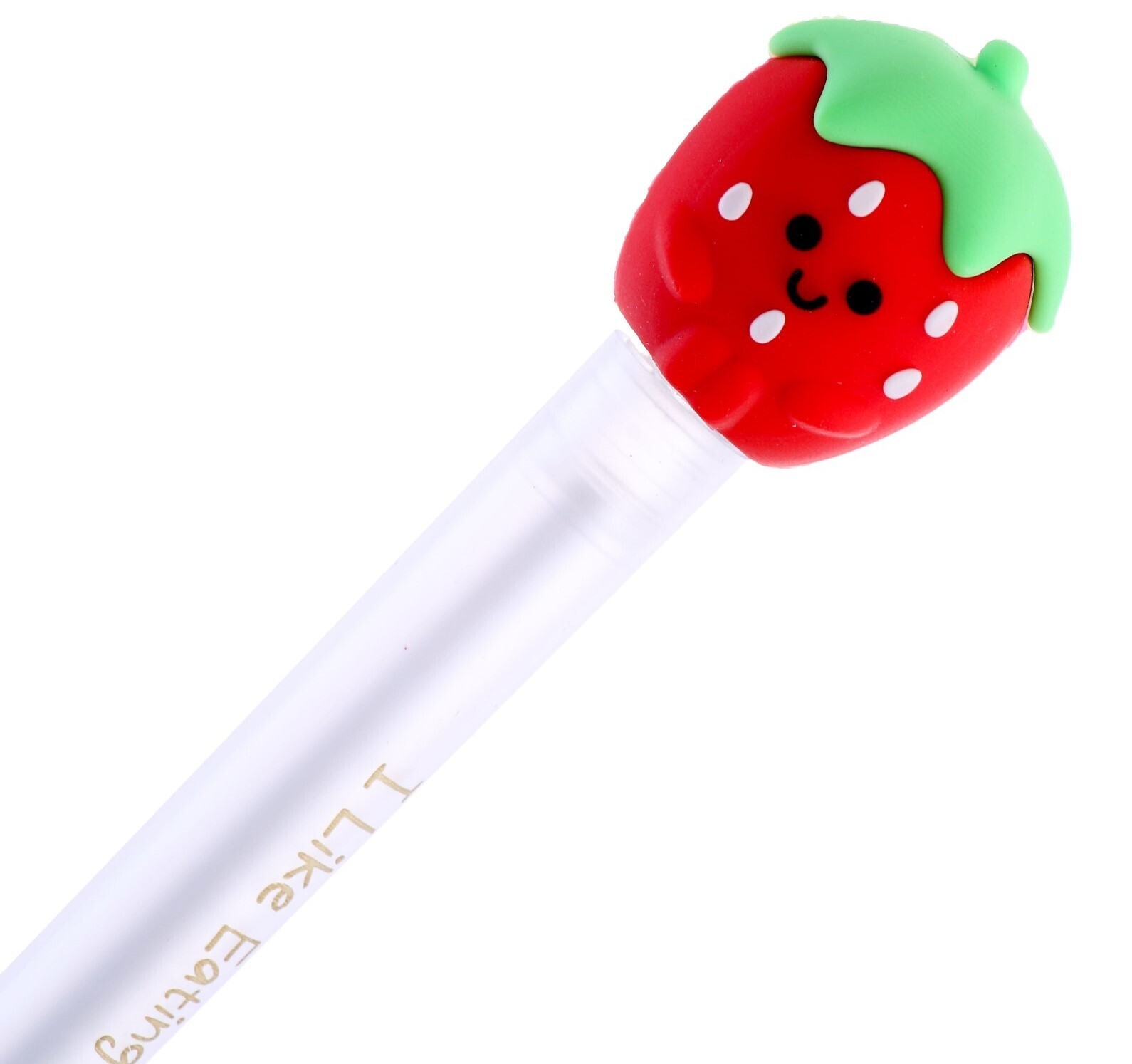 !09 Ручка гелевая - прикол (набор 4 штуки): "Девочка в шапочке", цвет МИКС ( 1 штука) + МИКС Ягоды/Фрукты/Овощи, вращающаяся (3 штуки)