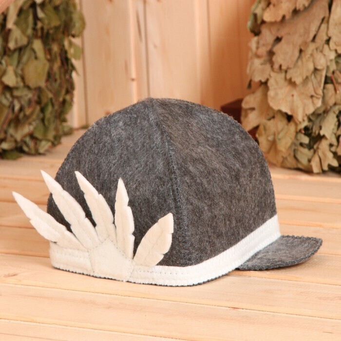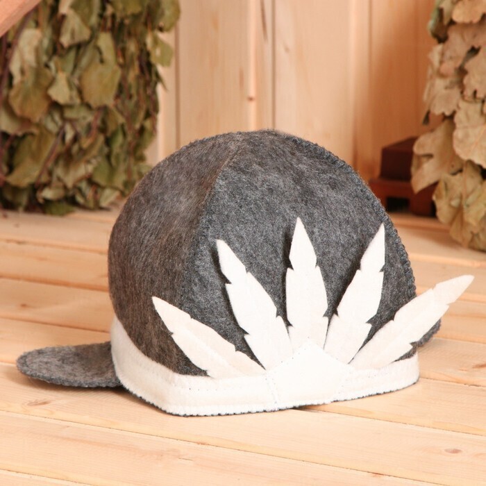 !09 Шапка для бани и сауны серая "Индеец" войлок