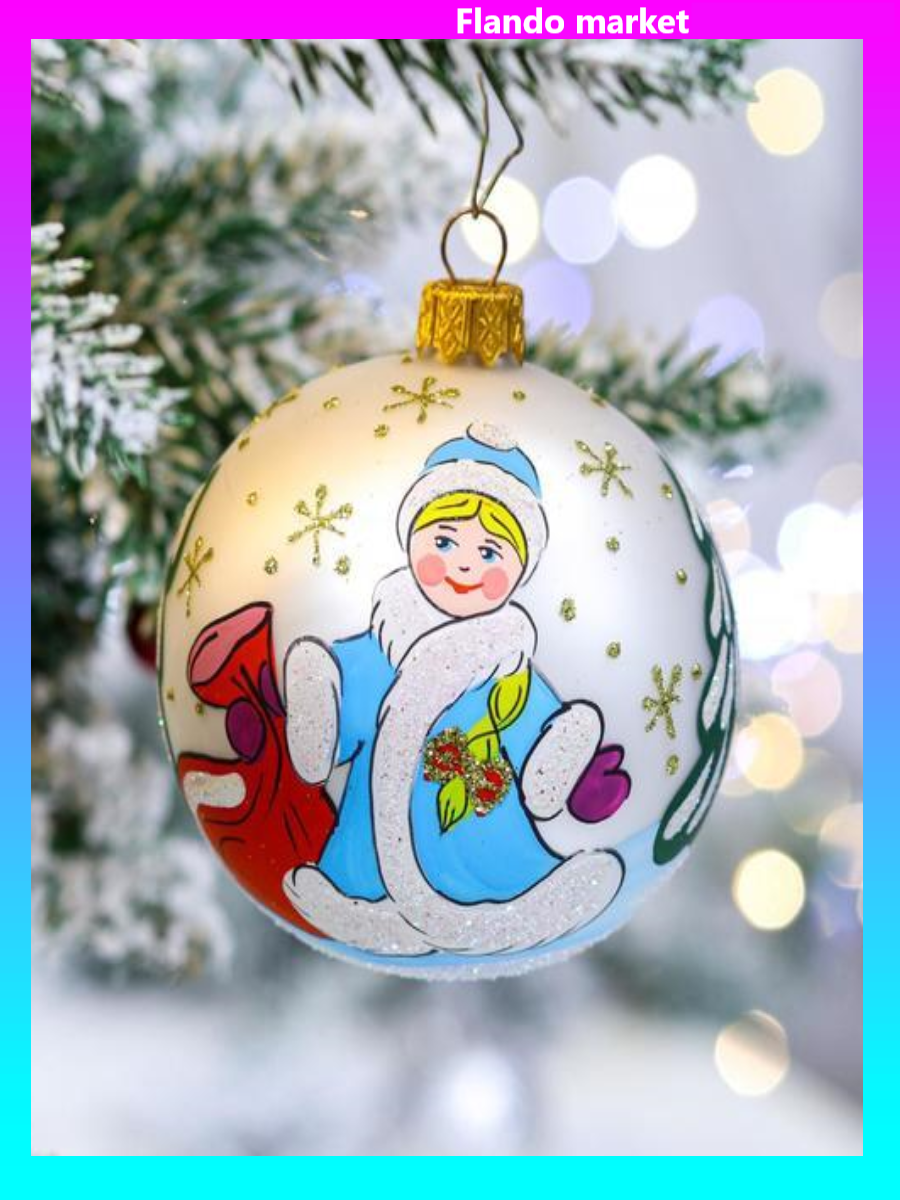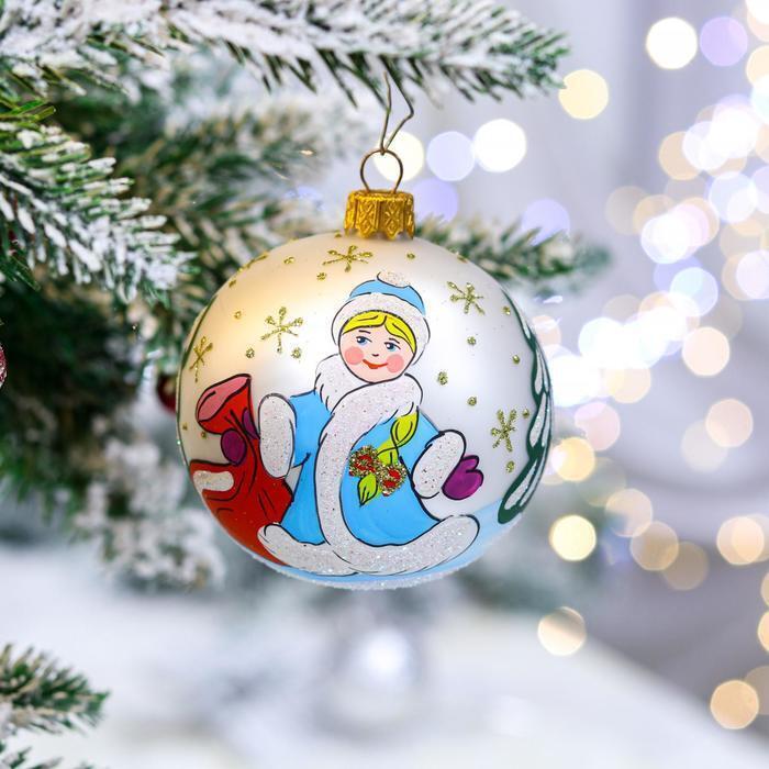 !09 Ёлочная игрушка Шар "Снегурочка", 80 мм, стекло