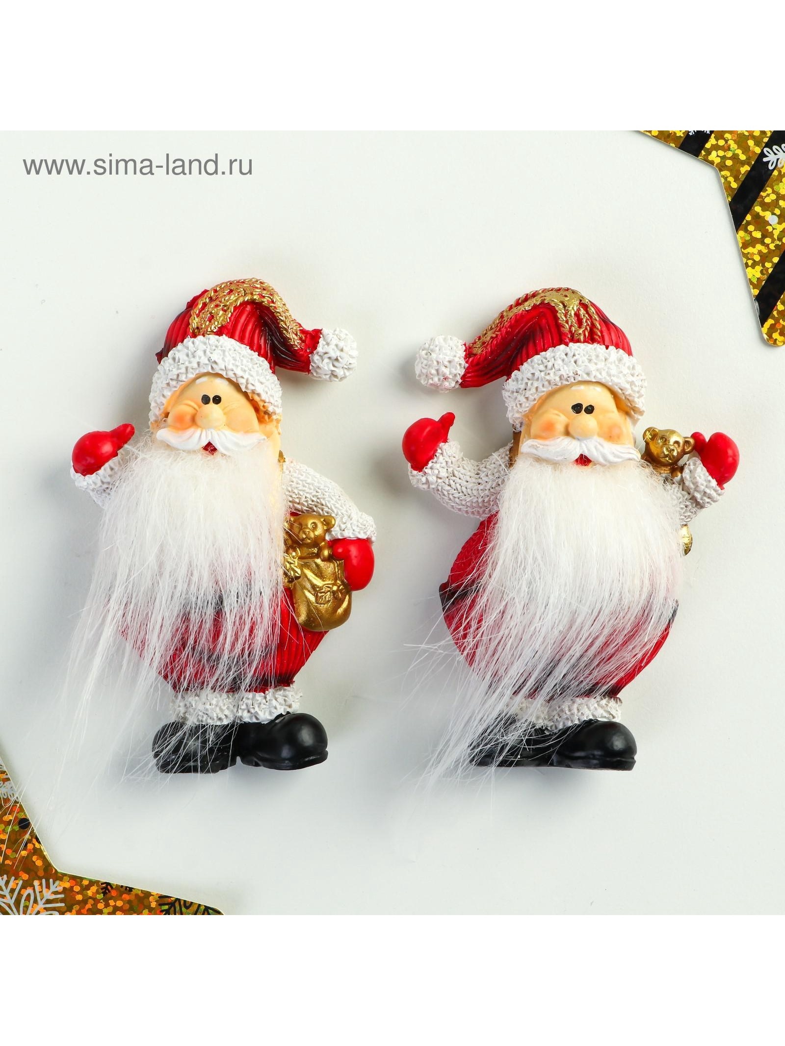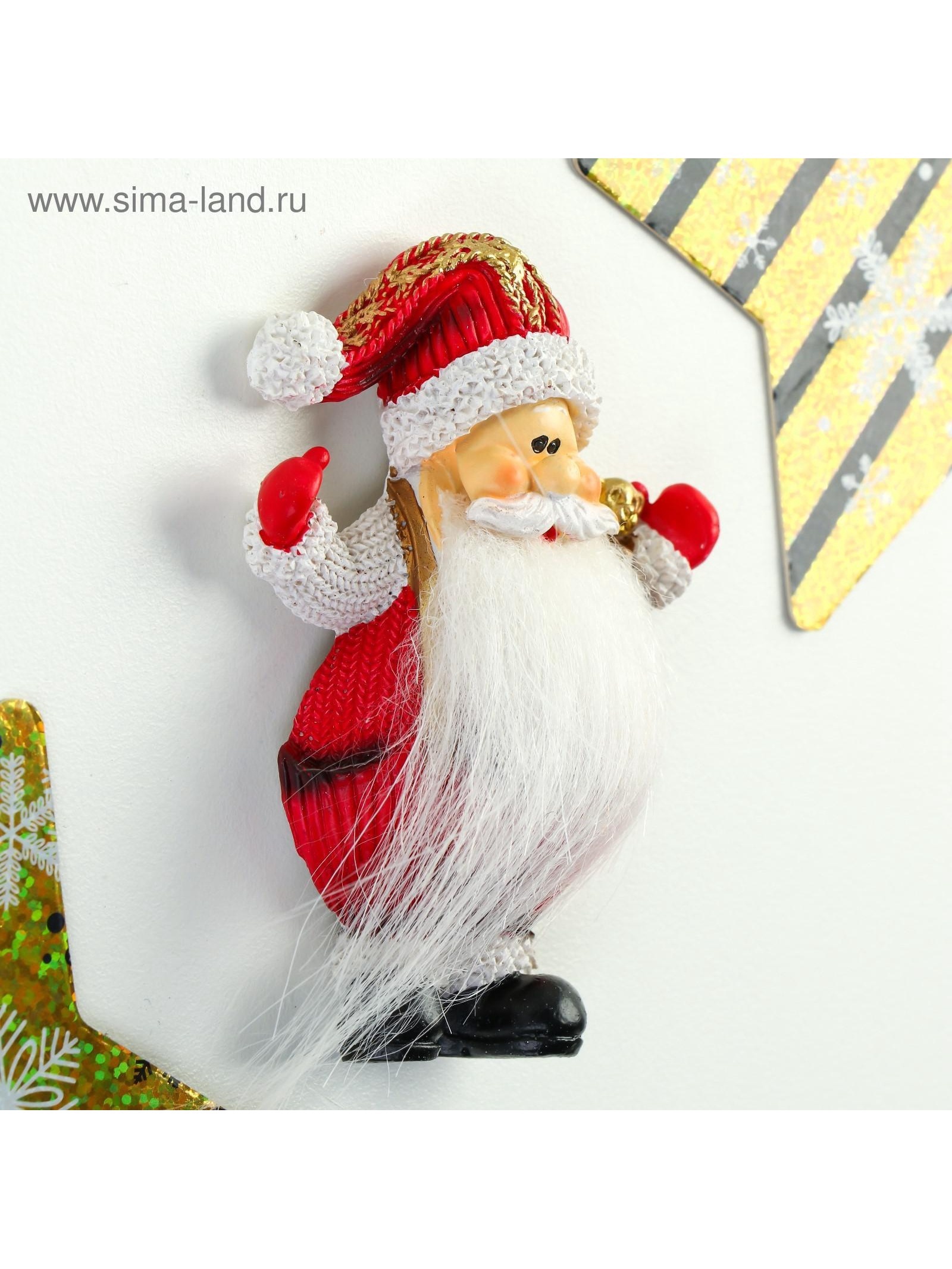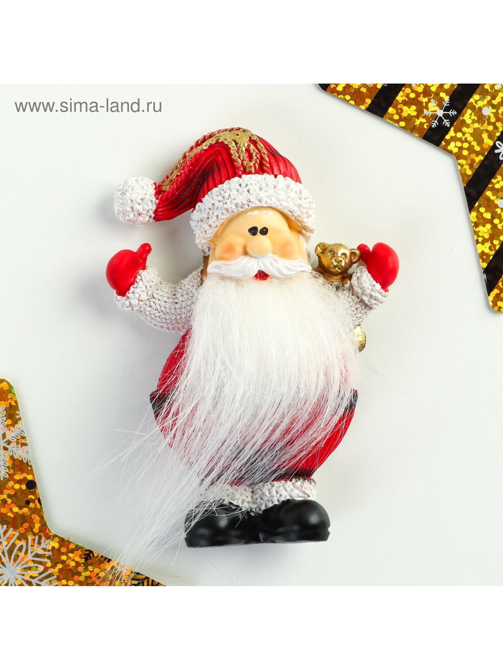 !09 Магнит на холодильник «Дедушка Мороз с длинной бородой», полистоун, 9.2×5.5×1 см, МИКС