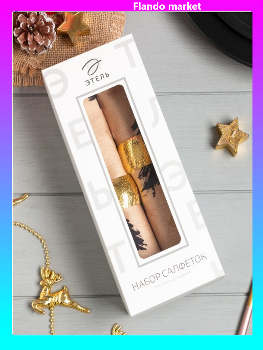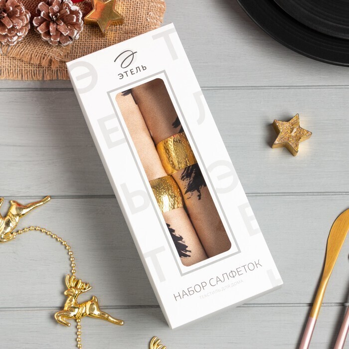 !09 Набор салфеток с декоративными кольцами "LOVE XMAS" 45х45 см - 2 шт, 100% хл, саржа 190гр/м2