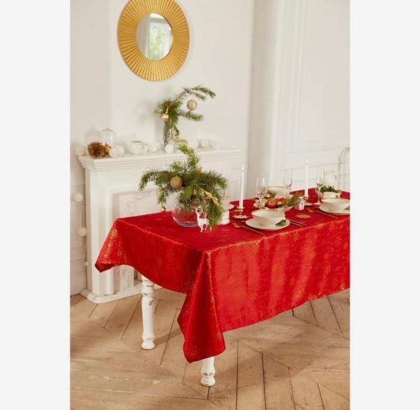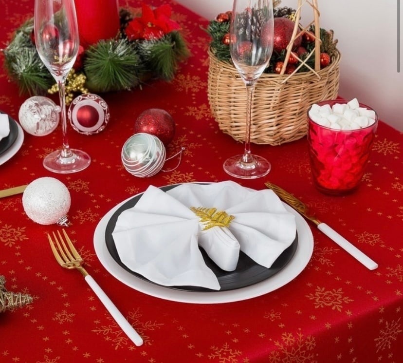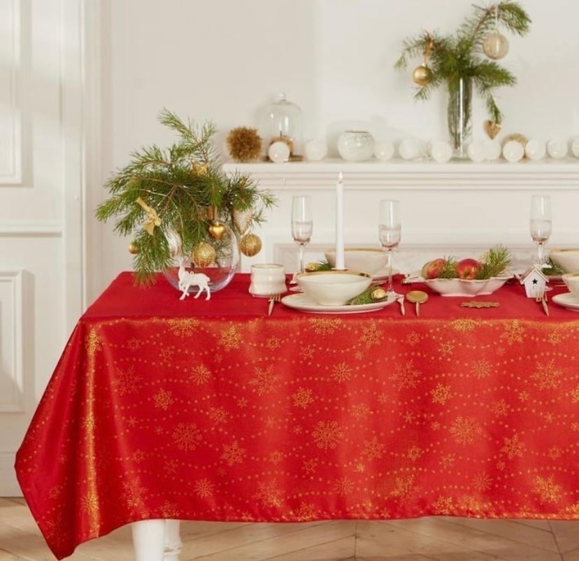 !09 Скатерть «Снежинки» красный, 110*150 см, 115 ±10 гр,100% п/э/