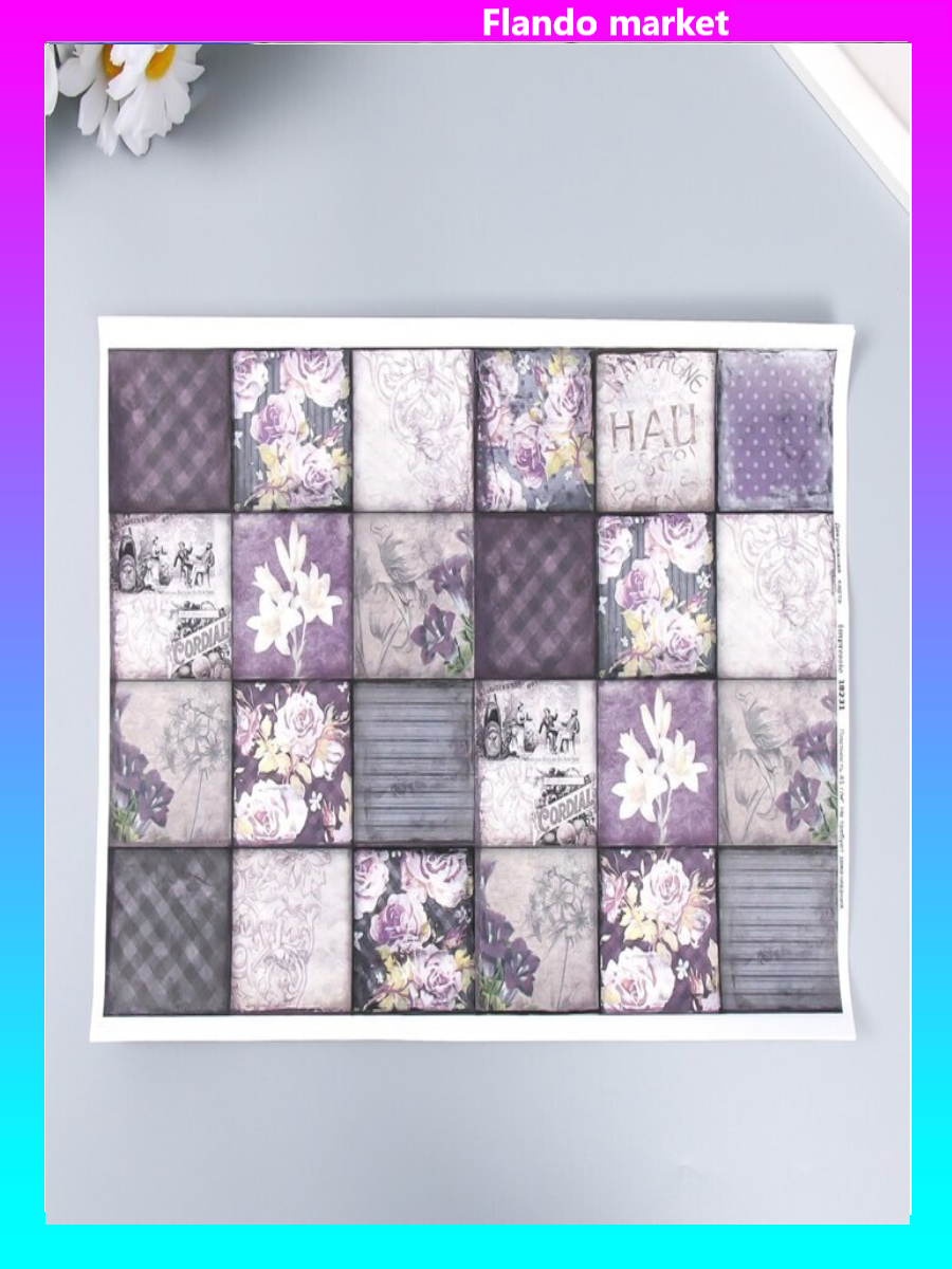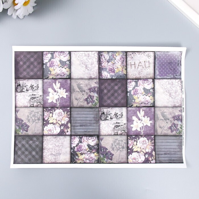 !09 Декупажная карта (набор 15 листов) "Цветочные квадраты" плотность 45 г/м2 формат А4