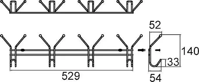 !09 НАСТЕННЫЕ КРЮЧКИ 003W000M41 52,9 см. 4 крючка хром