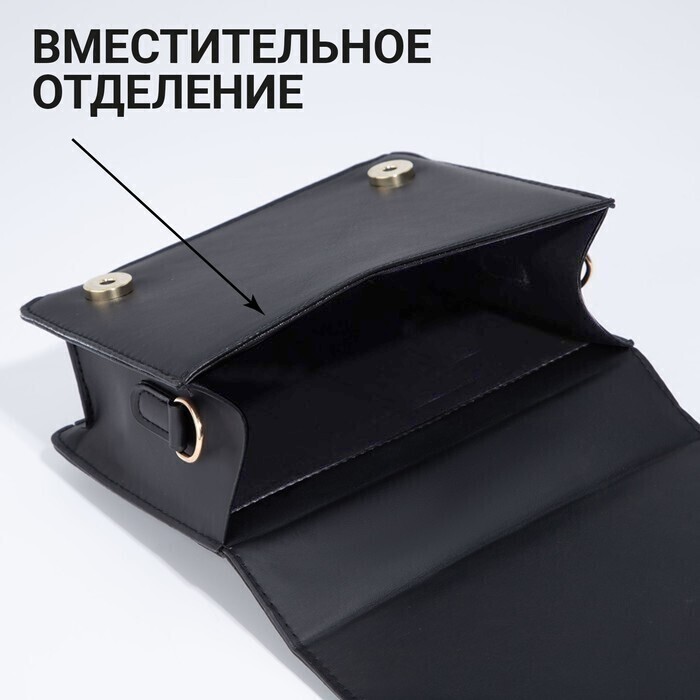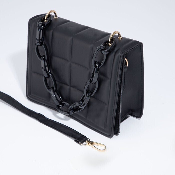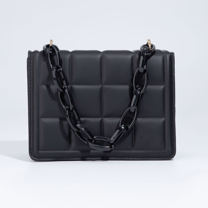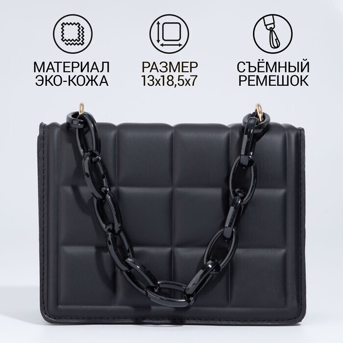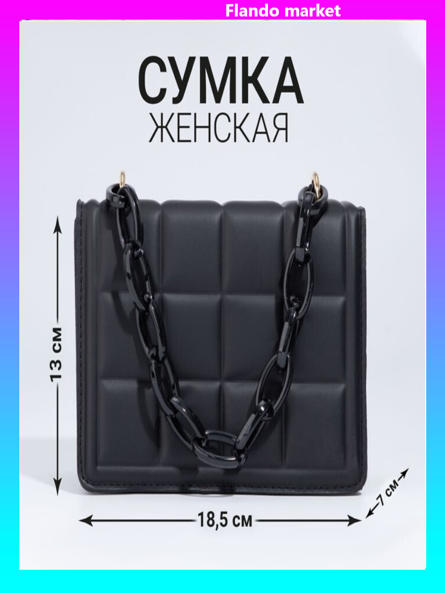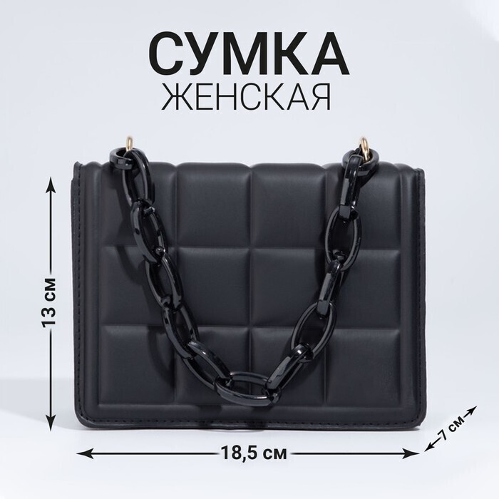 !09 Сумка женская мессенджер из искусственной кожи с цепью, 14×20 см, чёрная