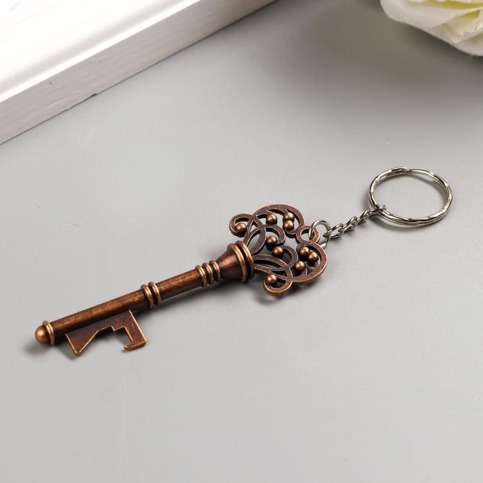 !09 Брелок металл "Ключ сплетённые сердца" бронза 7,5х2,6 см