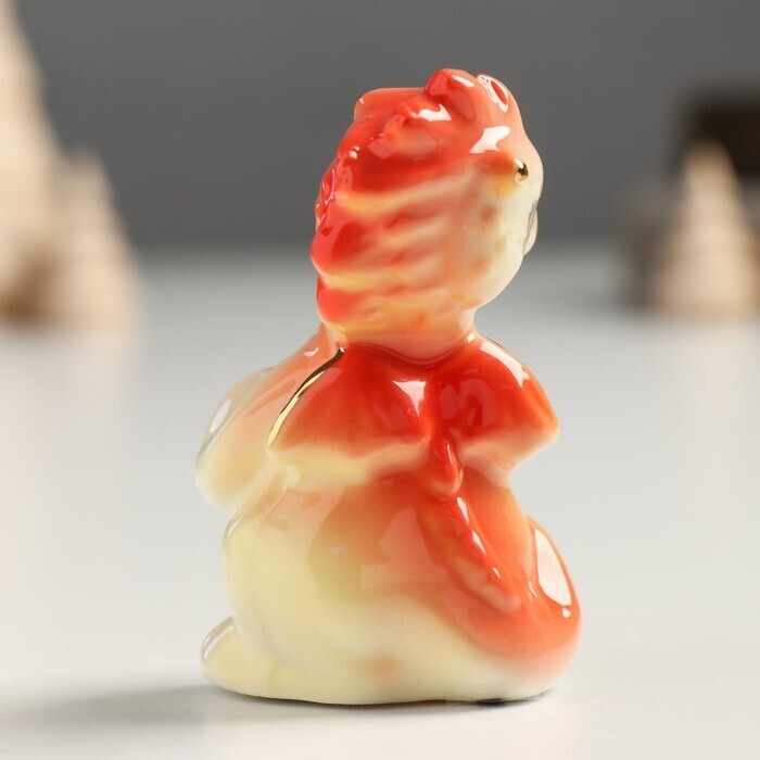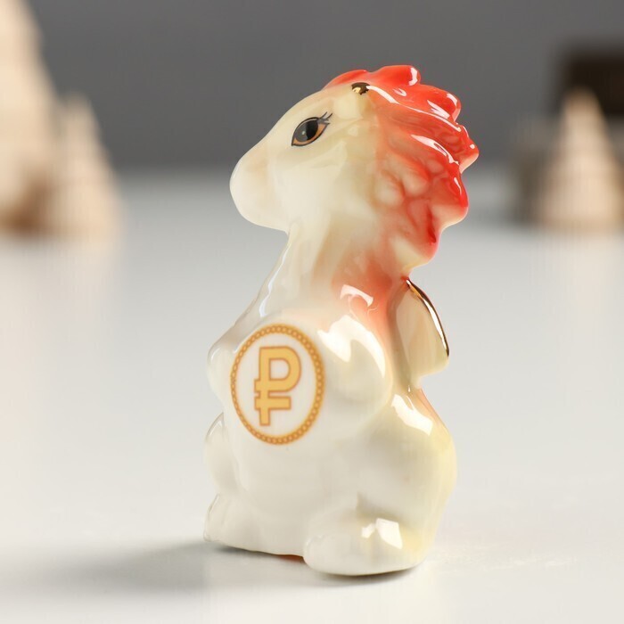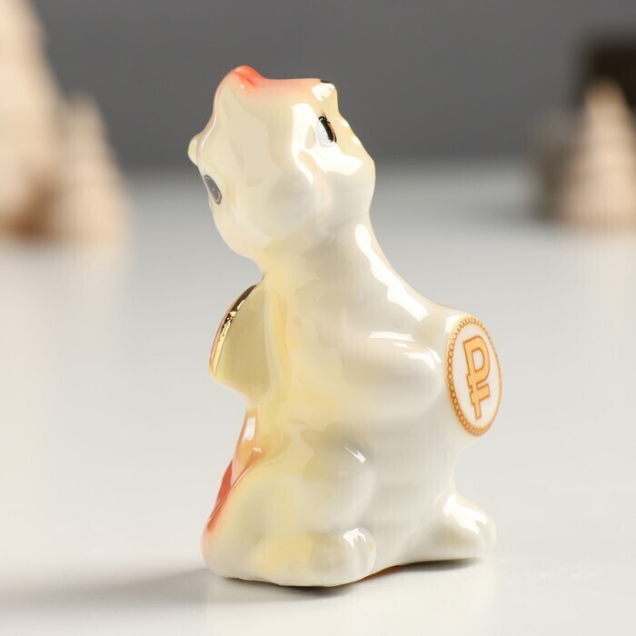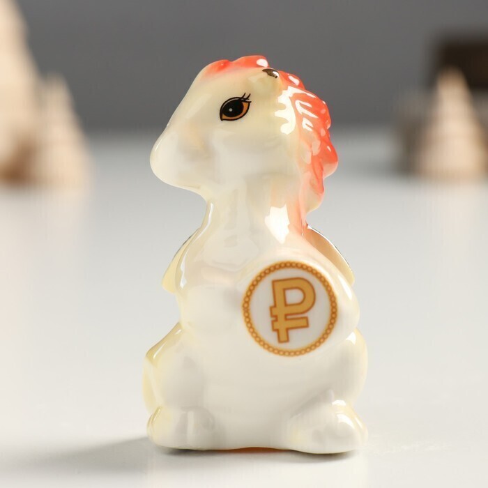 !09 Сувенир керамика "Дракоша с монетой -рубль" оранжево-золотой 3х4х6,8 см.