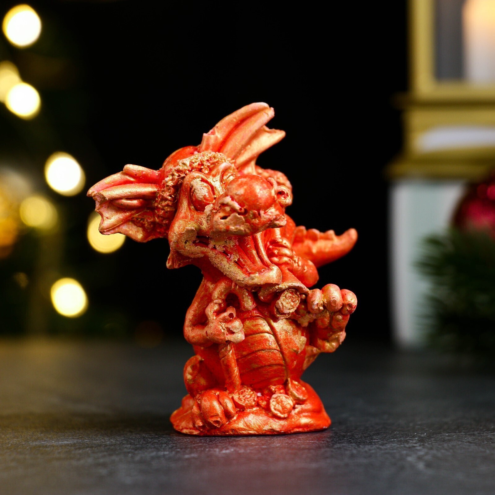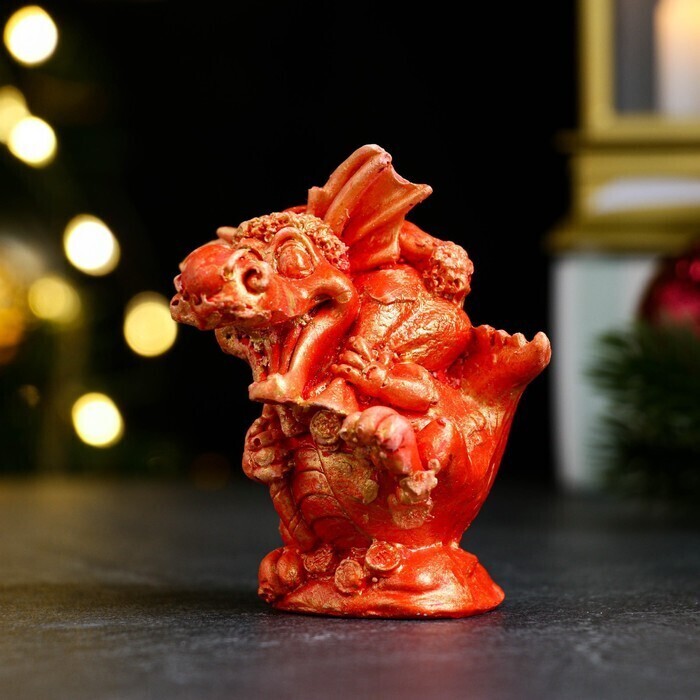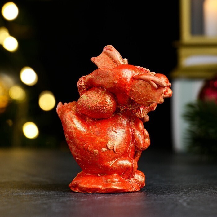 !09 Набор из 2-х фигурок - Фигура "Дракон с мешком подарков" красный с позолотой, 6х4х4см