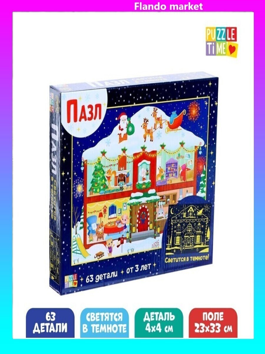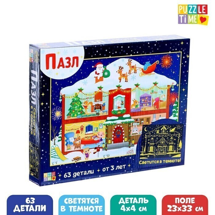 !09 Светящийся пазл (набор 2 штуки) «Новогодние хлопоты», 63 детали