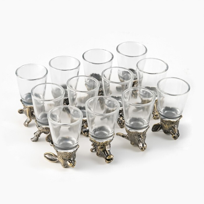 !09 Подарочный набор рюмок-перевертышей «Лучшему мужчине», 12 шт., рюмка 30 мл, стекло, металл