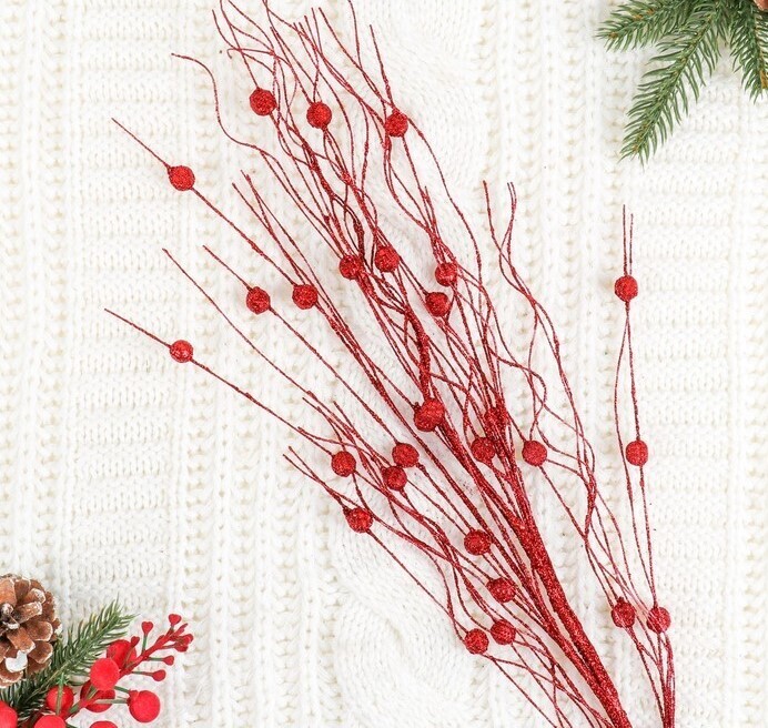 !09 Набор из 2-х изделий - Декор "Блеск" ветка с шариками, 72 см, цвет красный