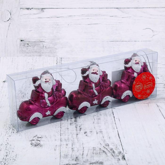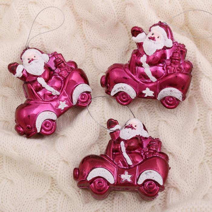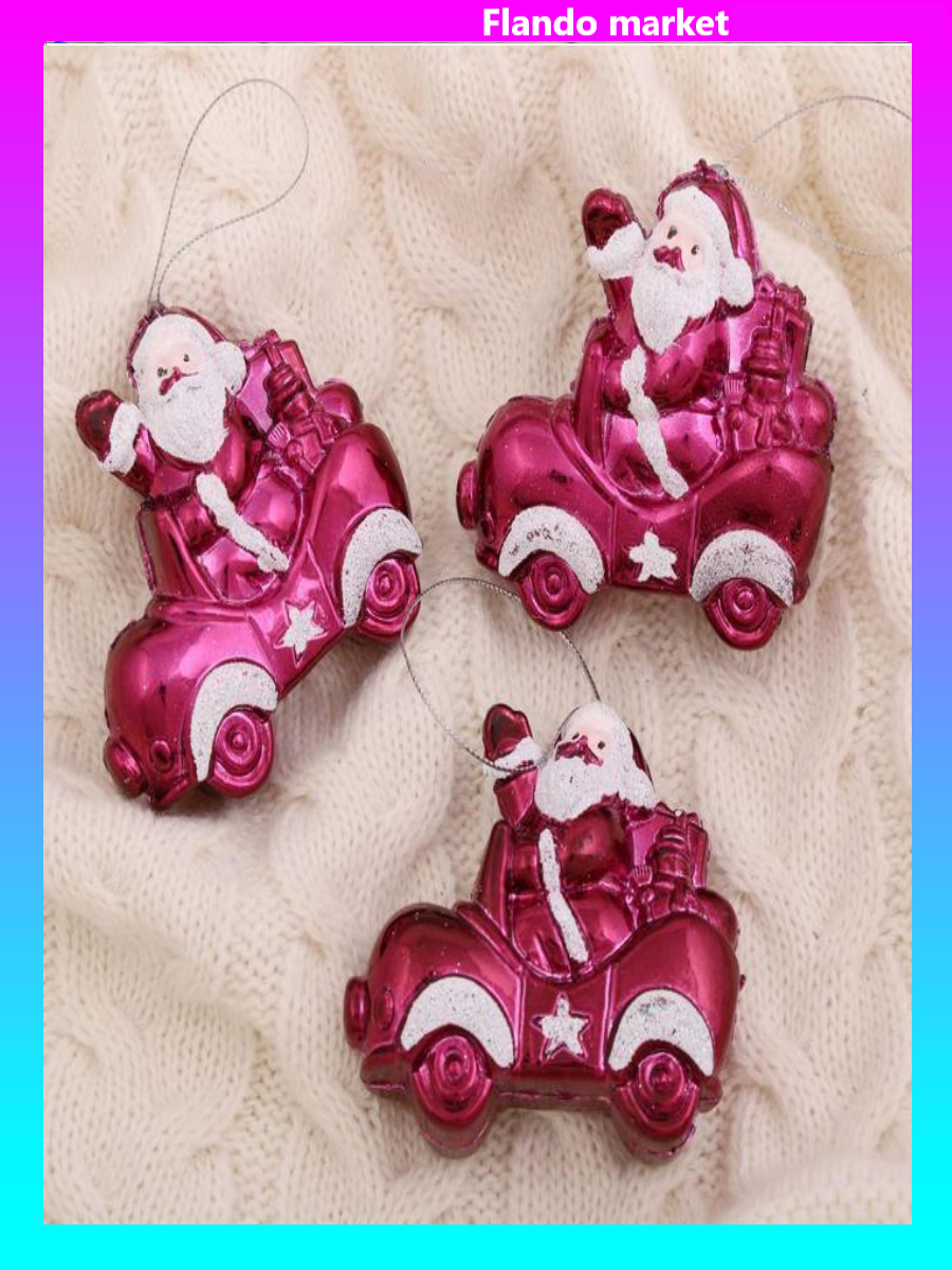 !09 Украшение ёлочное (набор 3 шт) "Дед Мороз в автомобиле" 7,5х7 см.