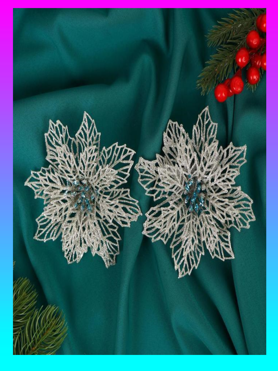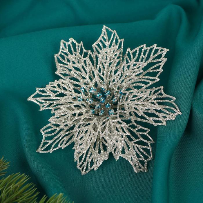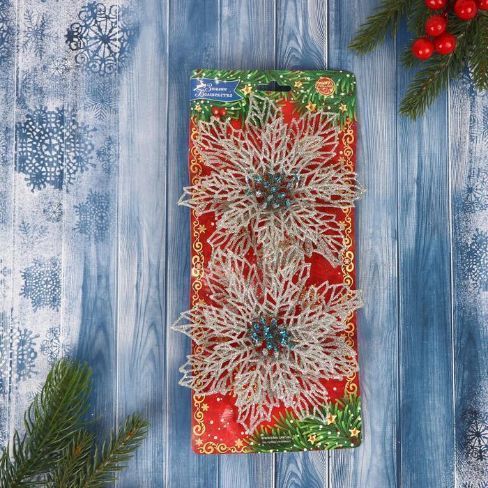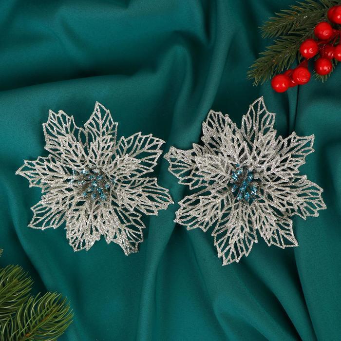 !09 Украшение ёлочное "Ажурный цветок" (набор 4 штуки) 14 см, серебро