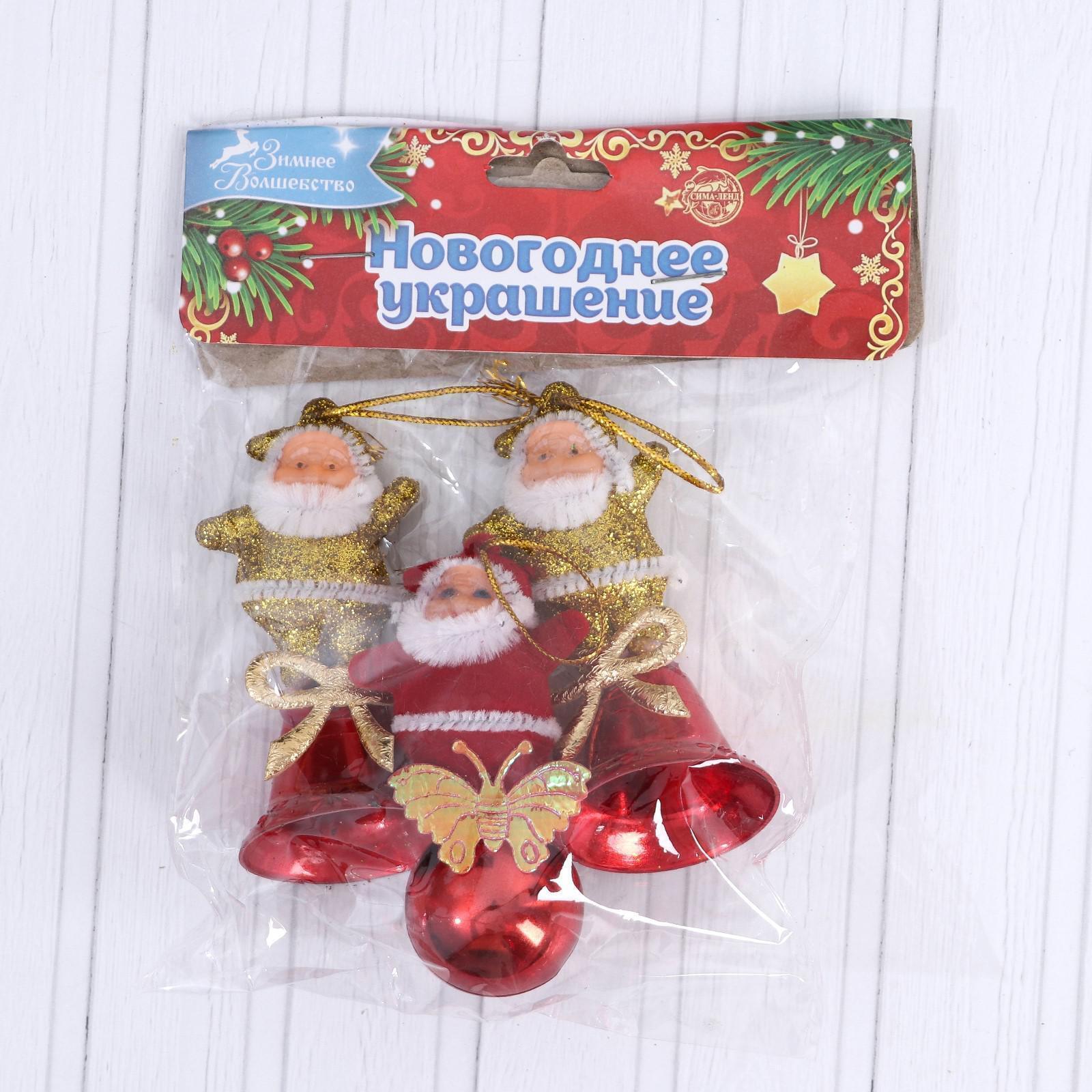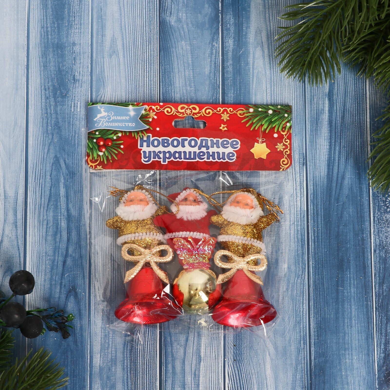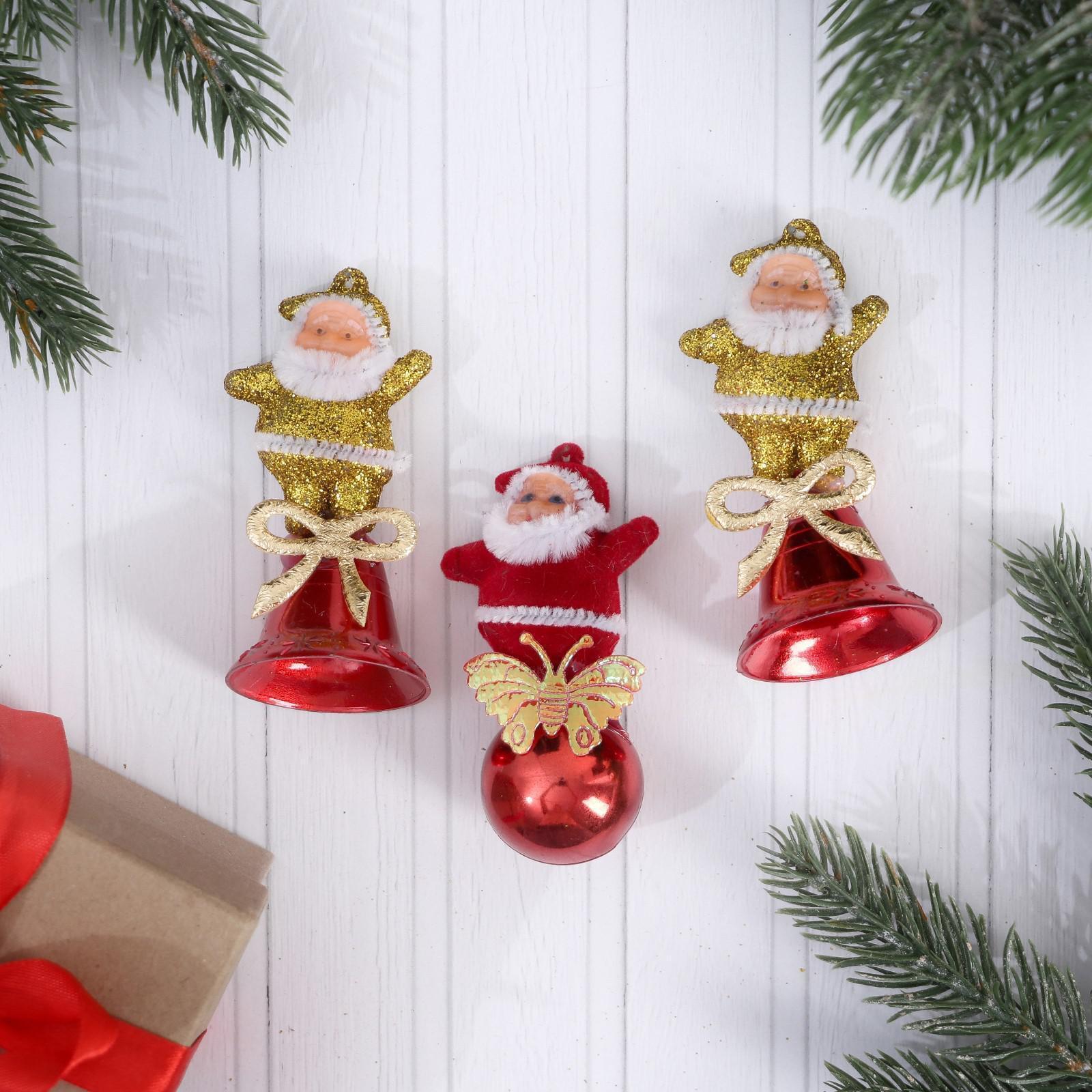!09 Украшение ёлочное (набор-6 штук) "Дедушка Мороз" колокольчики, шарик 3х7 см, цвет микс красно-золотой