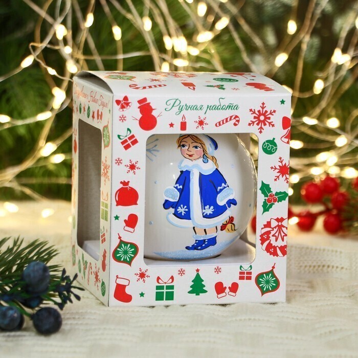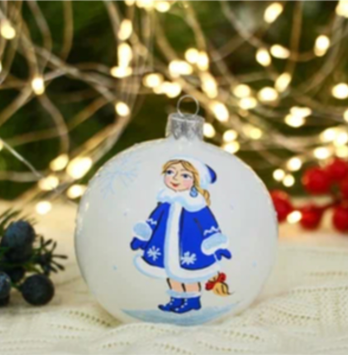 !09 Шар новогодний "Снегурочка" d-8 см, стекло дизайн микс