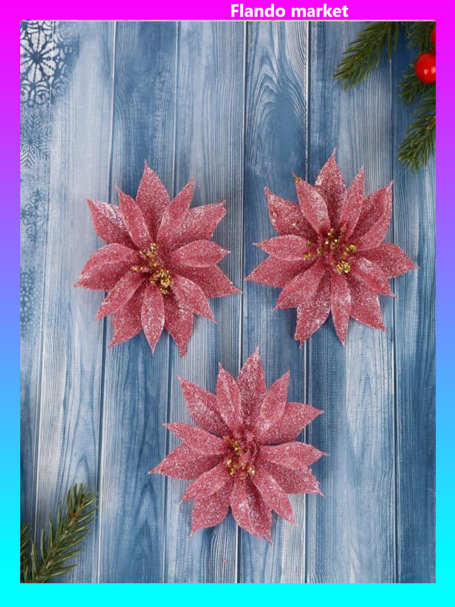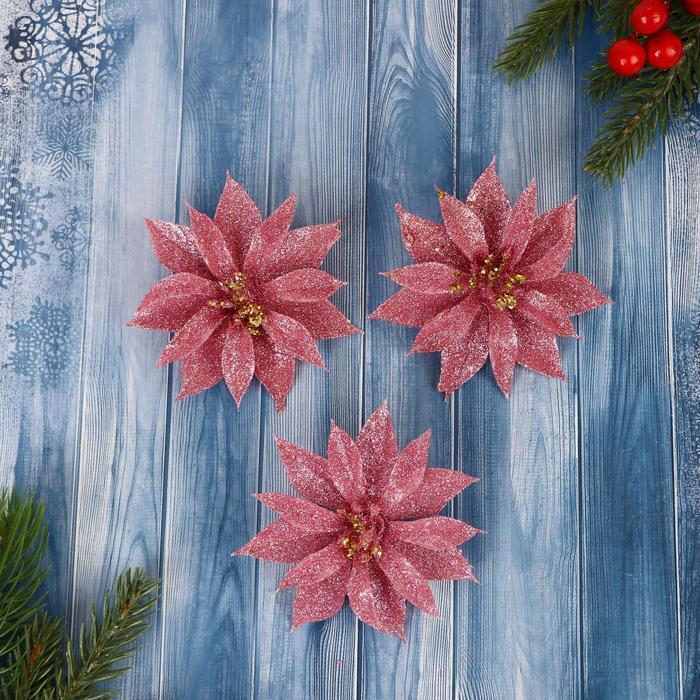 !09 Украшение ёлочное "Нежный цветок" (набор 6 штук) 10 см, цвет розовый