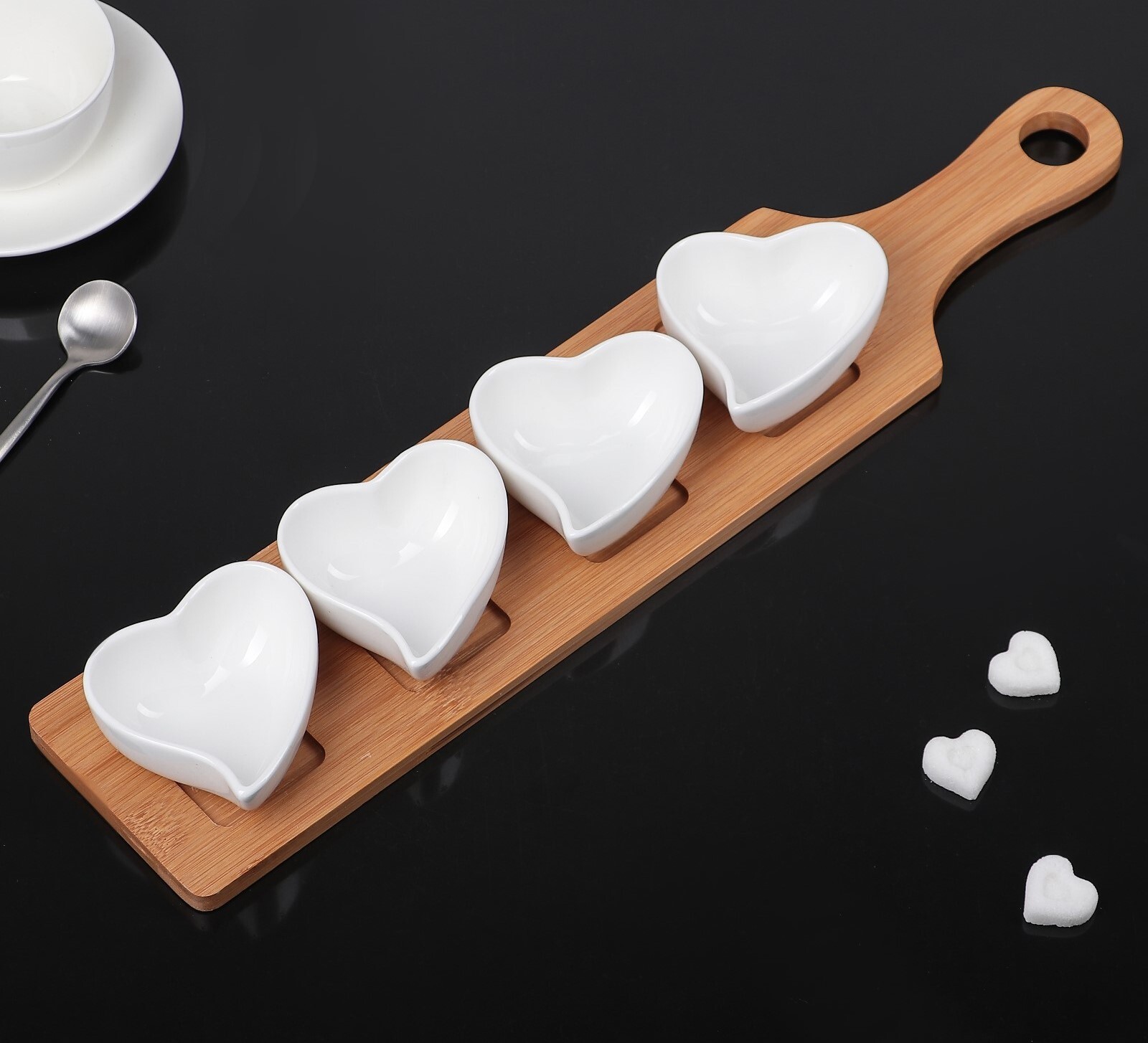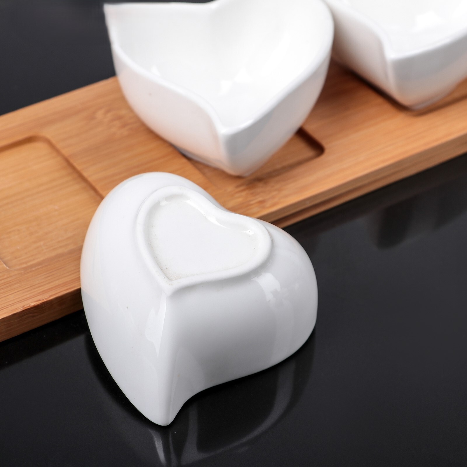 !09 Набор соусников «Эстет.Сердце», 125 мл, 4 шт, на деревянной подставке