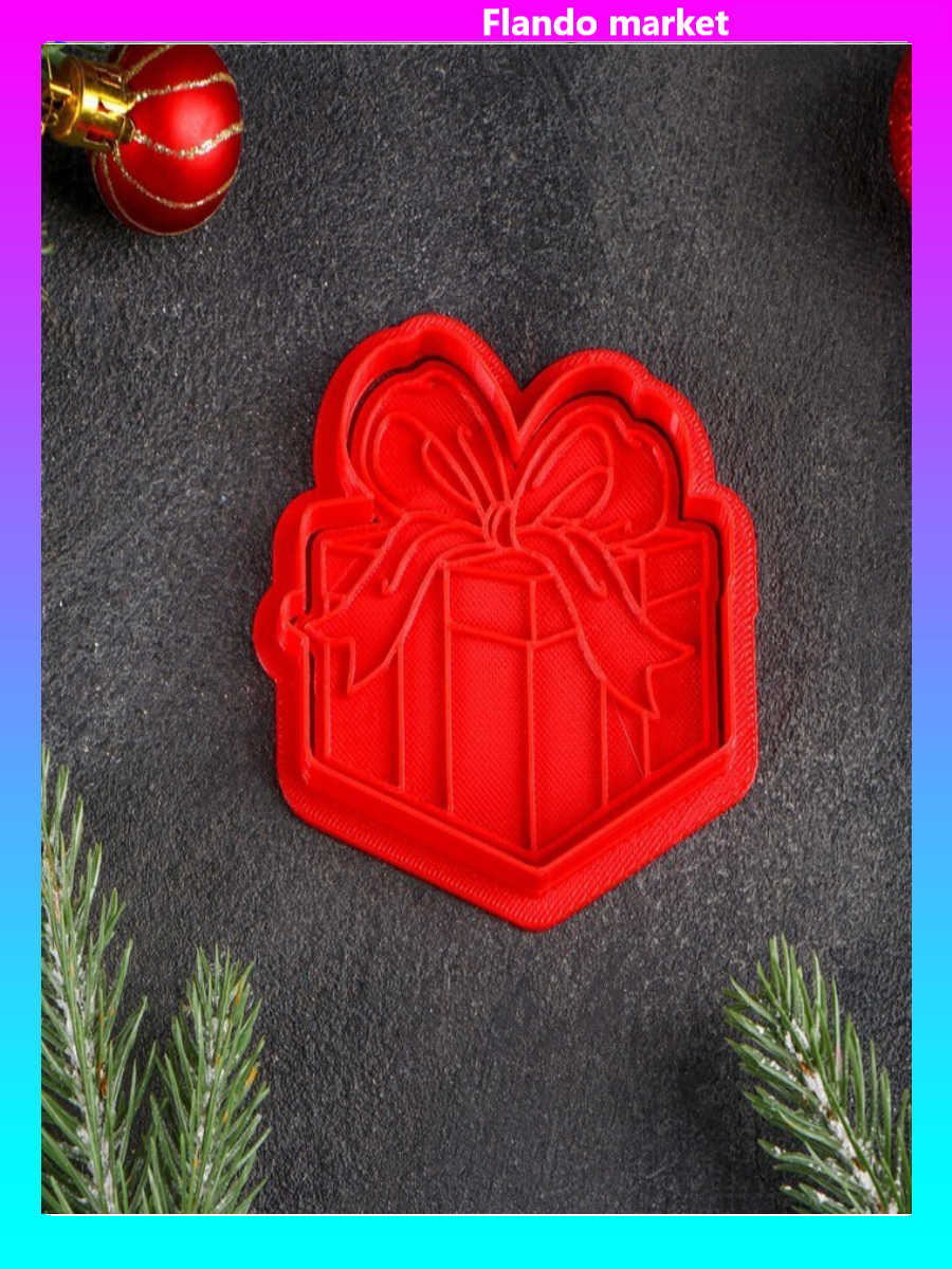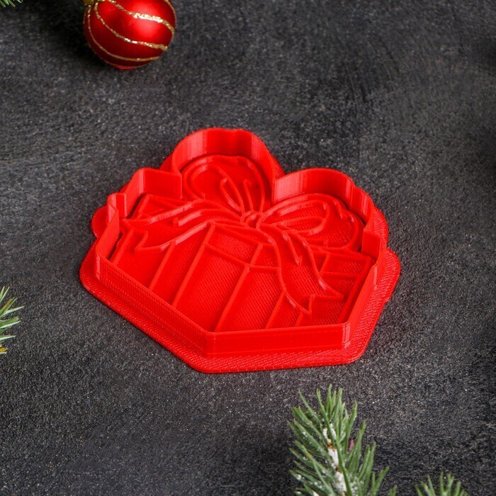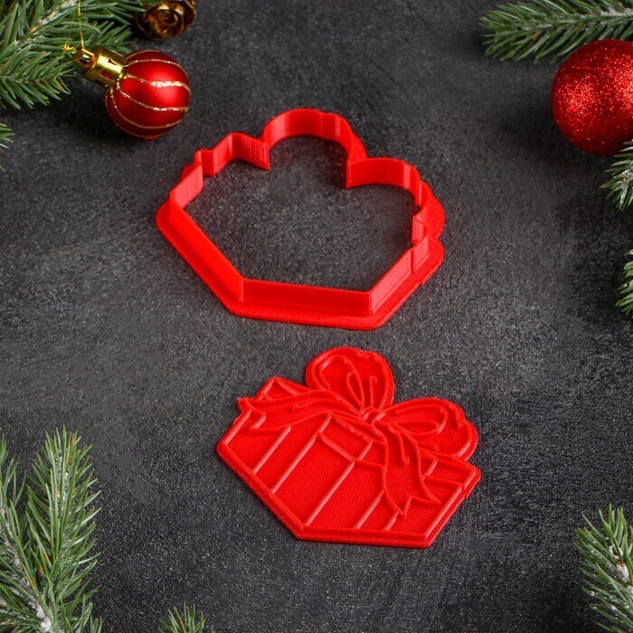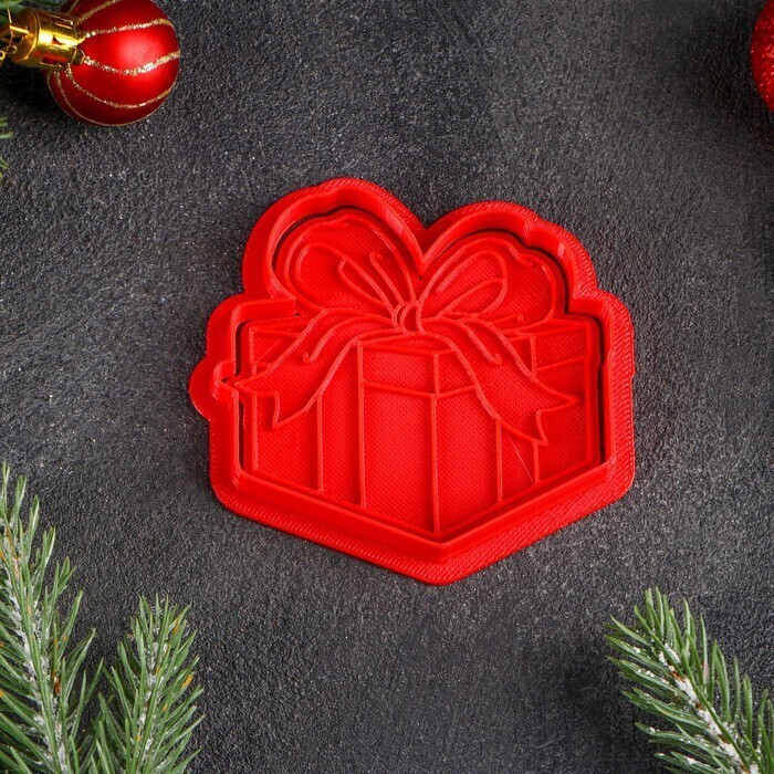 !09 Форма для печенья «Подарочная коробка» 8x9 см., штамп, вырубка, цвет красный