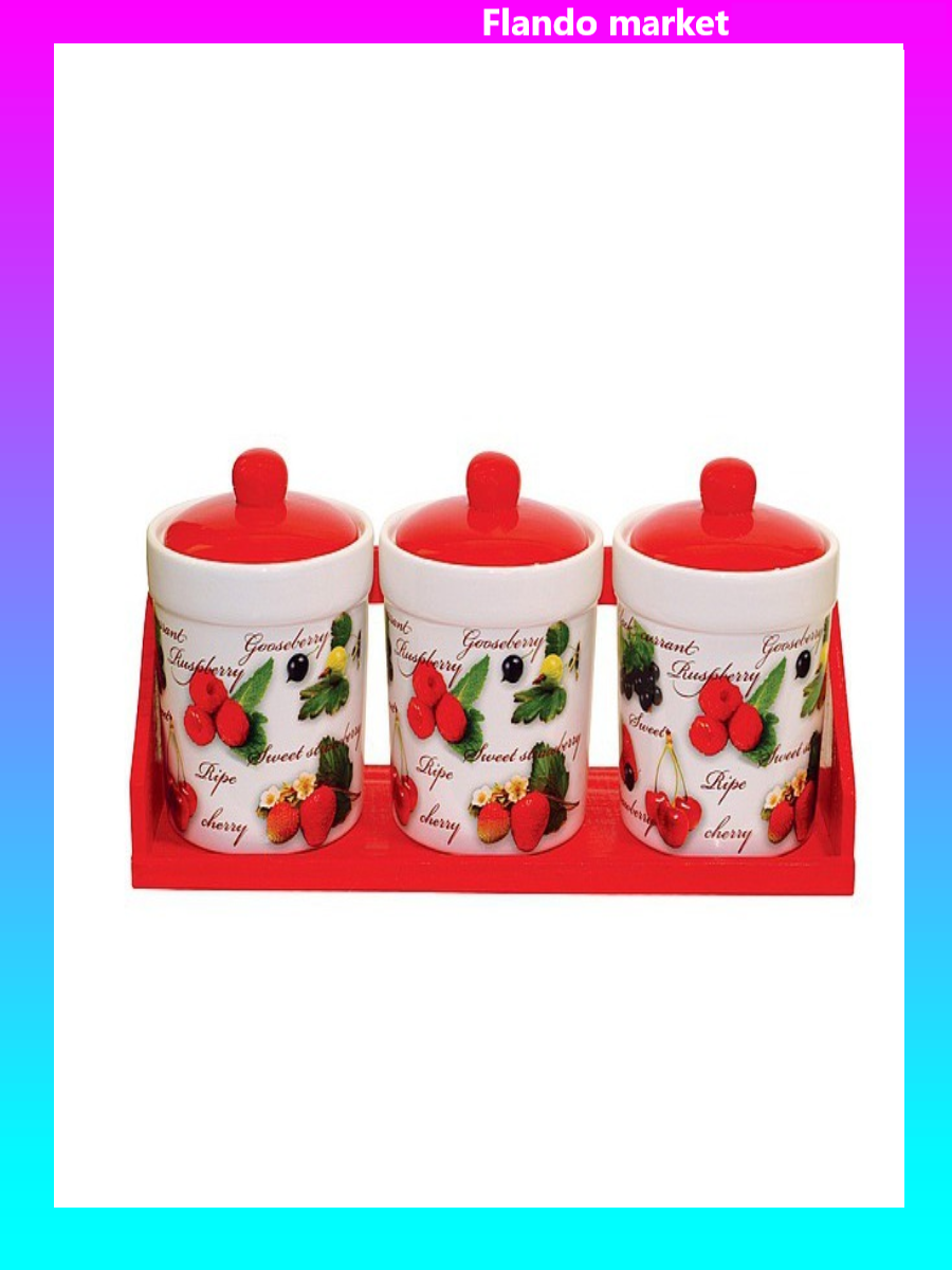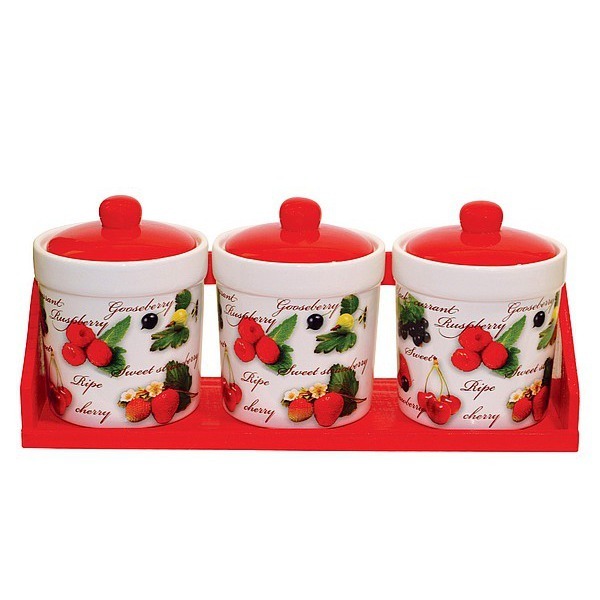 !09 БАНКИ ДЛЯ СЫПУЧИХ ПРОДУКТОВ, НАБОР 3ШТ.,500 мл. "САДОВАЯ ЯГОДА" банки круглые