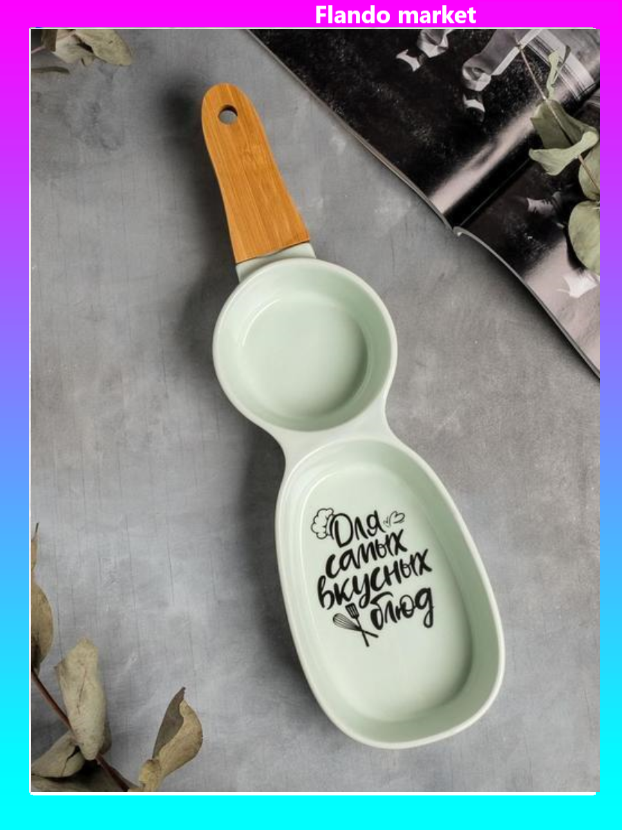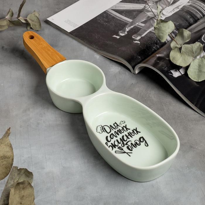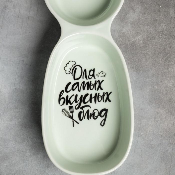 !09 Блюдо с двумя отсеками «Для самых вкусных блюд», зелёное, 36 х 10 см