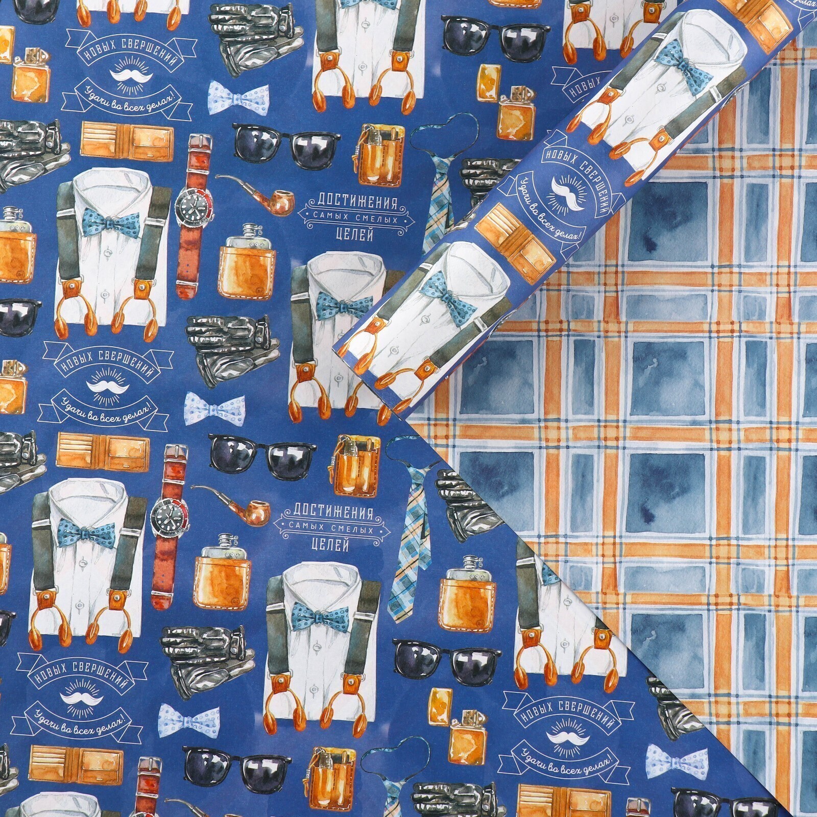 !Бумага (набор 3 листов) упаковочная крафтовая двусторонняя «Джентельмен», 70 × 100 см.